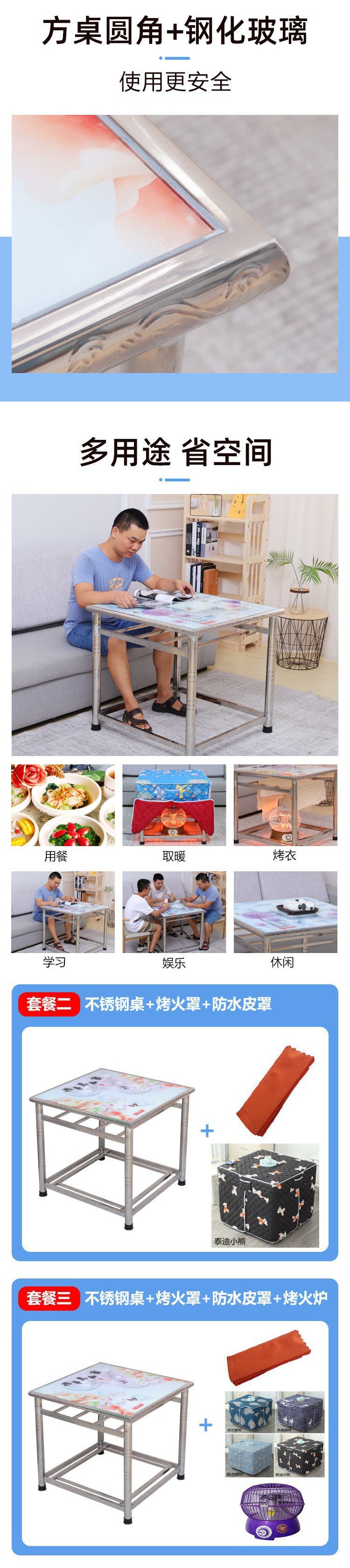 Thép không gỉ có thể gập lại bàn lửa nhà mới bàn ăn bàn vuông bài tập về nhà bàn cờ mùa đông bàn lửa