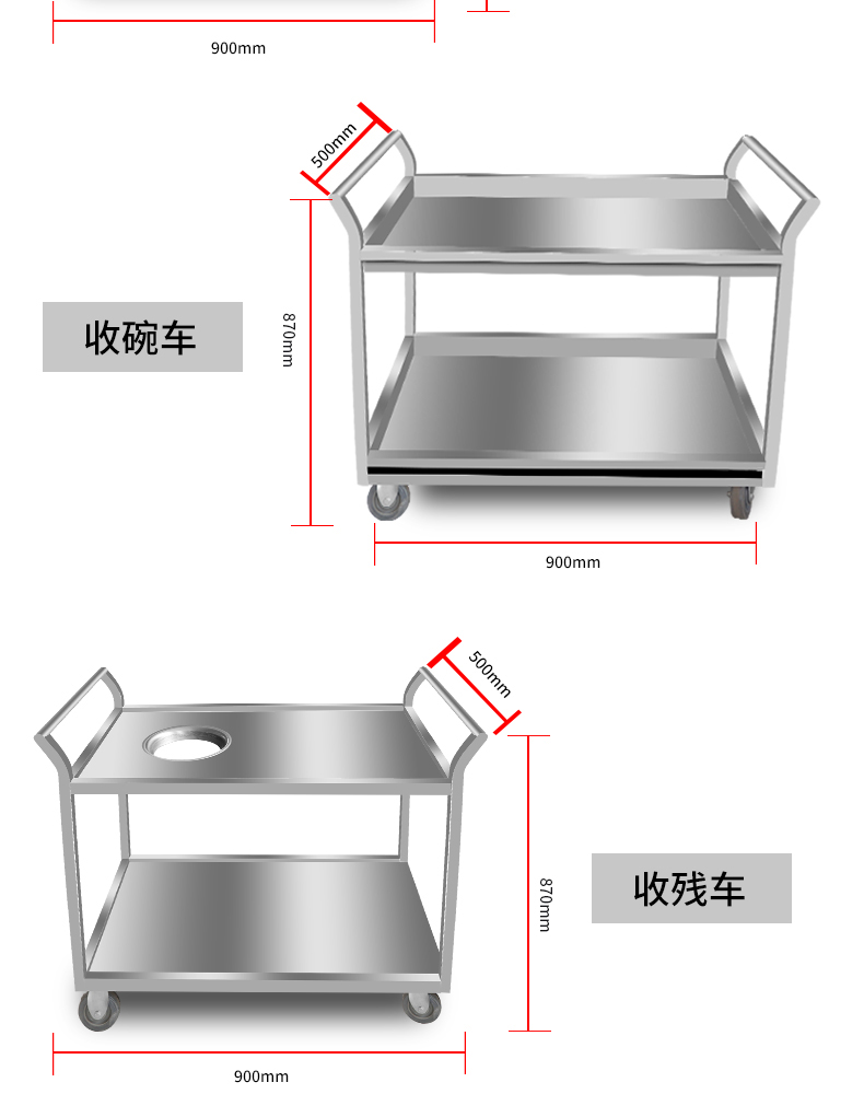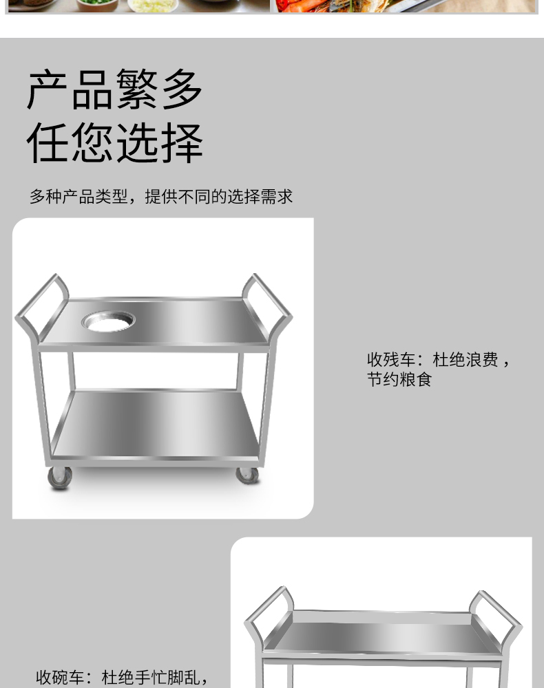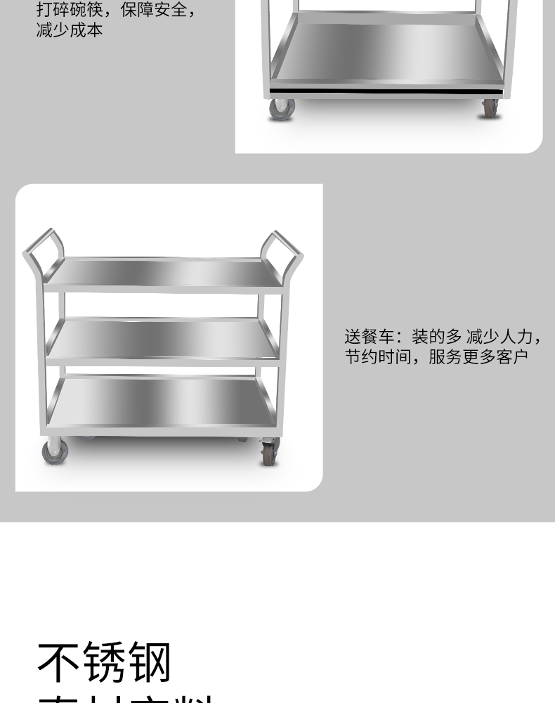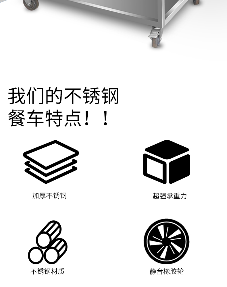 Thép không gỉ dày xe ăn uống thương mại khách sạn nhà hàng xe đẩy bát hai lớp xe ba lớp xe đẩy phẳng xe đẩy