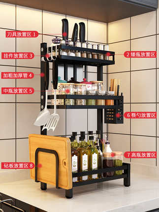 Thép không gỉ giá bếp sàn màu đen nhiều lớp công cụ lưu trữ gia vị vật tư thiết bị nhỏ kệ cửa hàng bách hóa