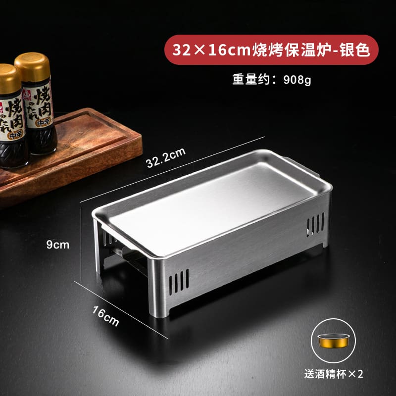 Thép không gỉ hình chữ nhật thịt nướng hâm nóng bếp nhà hàng thương mại nến rượu sưởi ấm bếp xiên đĩa nóng xiên bán buôn là thiết bị nằm trong danh mục Đồ nhà hàng > Bếp nướng, được thiết kế chuyên dụng cho các nhà hàng cần sự tiện nghi và chuyên nghiệp.