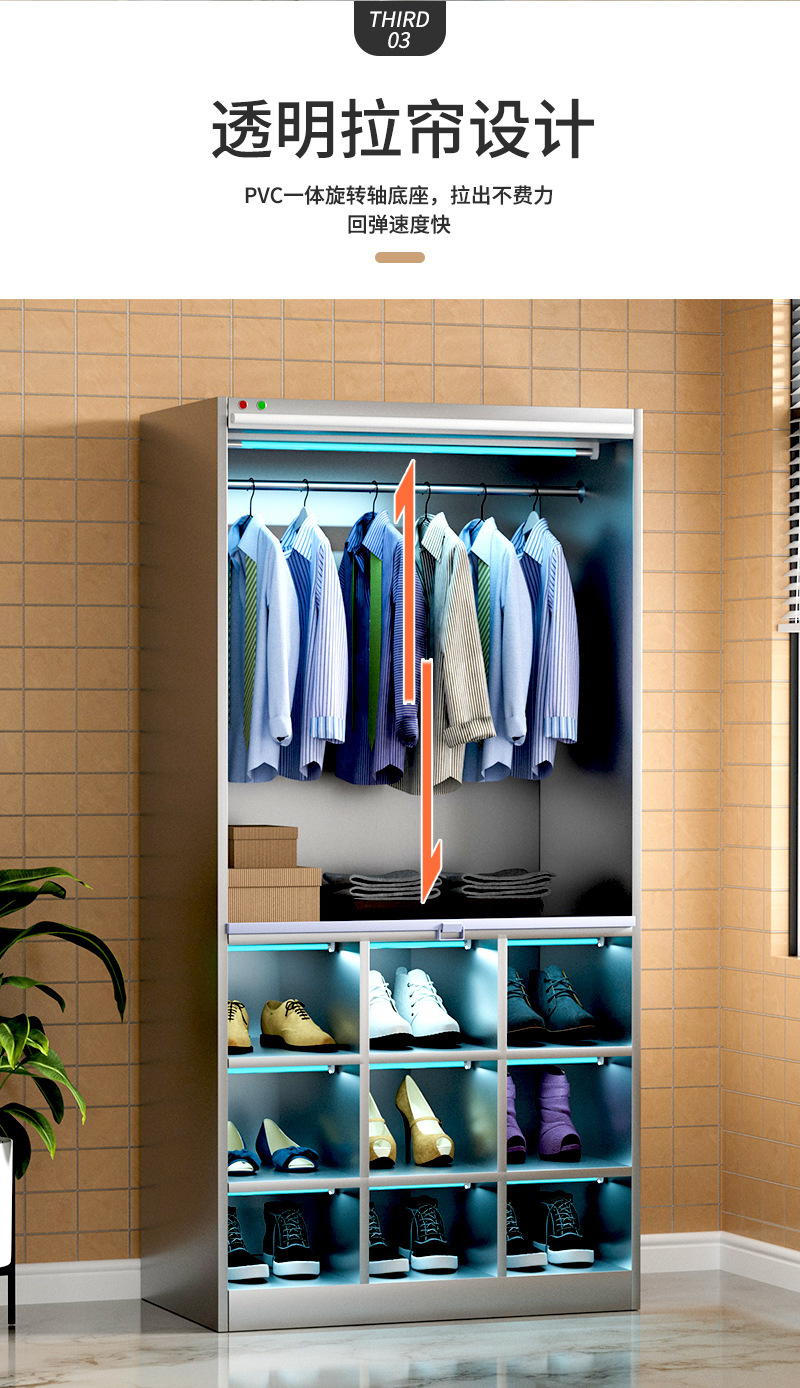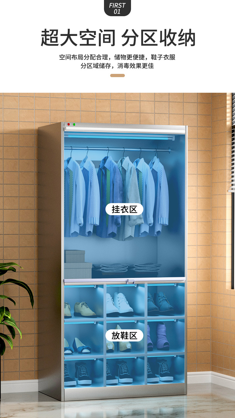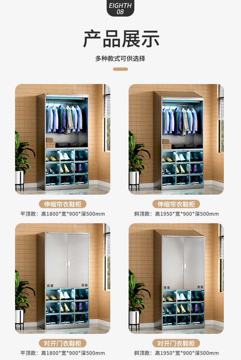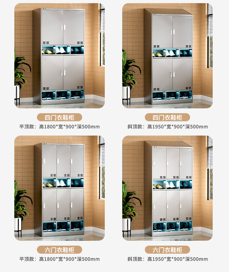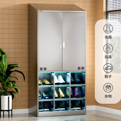 Thép không gỉ nghiêng hàng đầu xưởng thanh lọc vô trùng không bụi nhà máy thực phẩm khử trùng bằng tia cực tím tủ đựng đồ nhân viên tủ giày