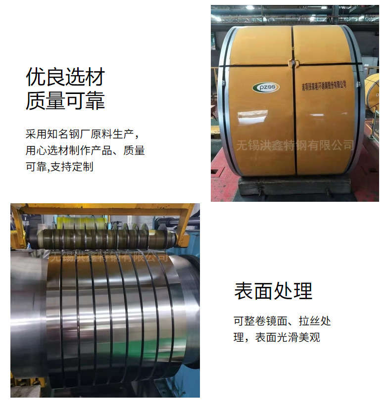 【种类】:不锈钢带、不锈钢薄料、不锈钢带、弹簧不锈钢带、拉伸不锈钢带(DQ不锈钢带)深冲压不锈钢带(DDQ不锈钢带)、高铜不锈钢带、中铜不锈钢带、特硬不锈钢带、软态不锈钢带、蚀刻不锈钢带、超窄不锈钢带、无磁不锈钢带、无磁不锈钢带等