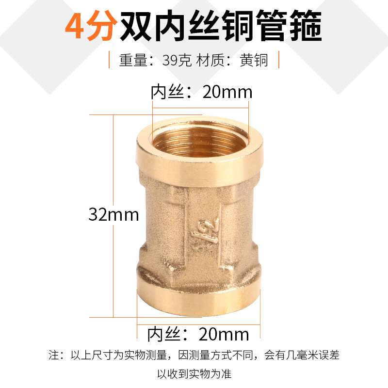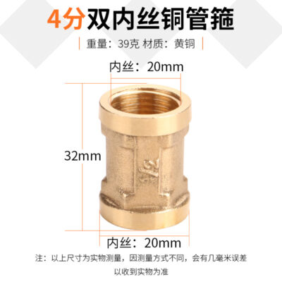 纯铜/不锈钢 异径管古管箍 4分/6分1寸1.2寸内丝 双内丝直接铜接头 铜管箍