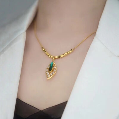 Thép titan bạc vỡ vài lượng vàng nhánh lá ngọc xương đòn dây chuyền nữ một lá phong phú đơn giản vi khảm zircon lá xanh vòng cổ