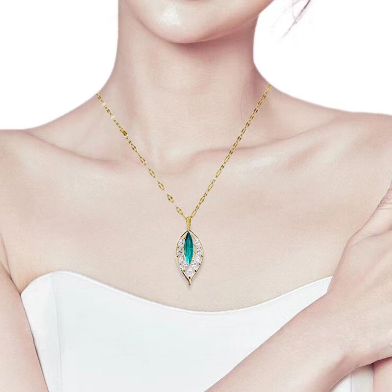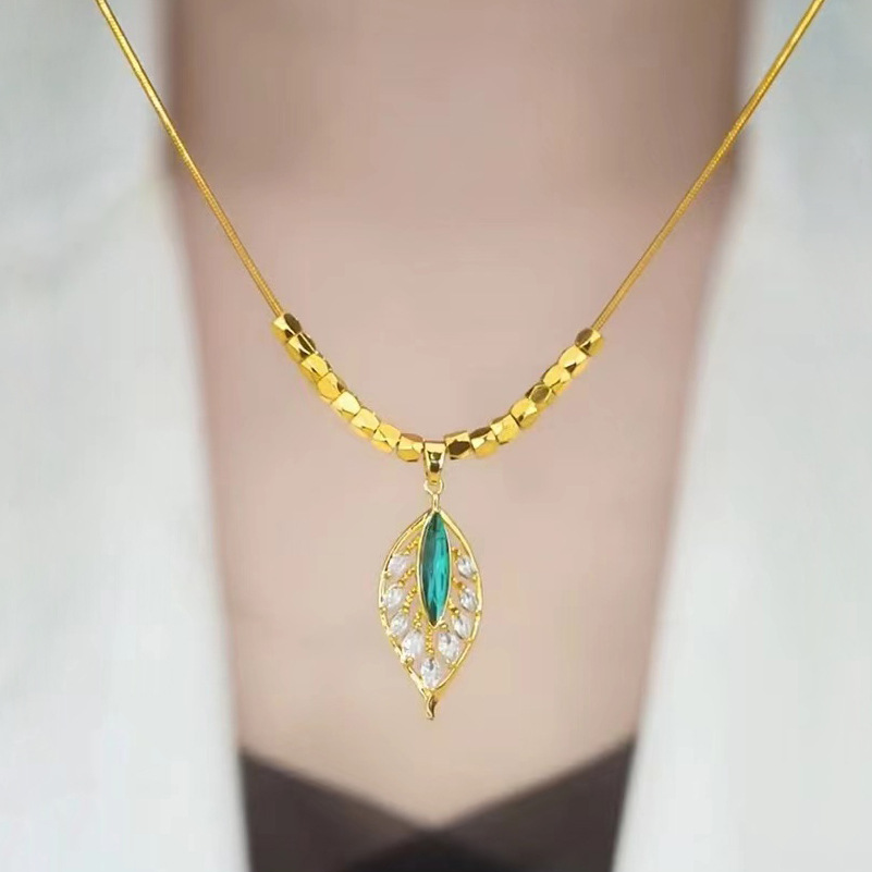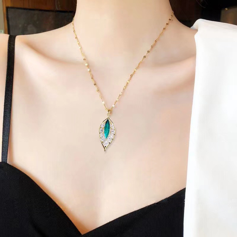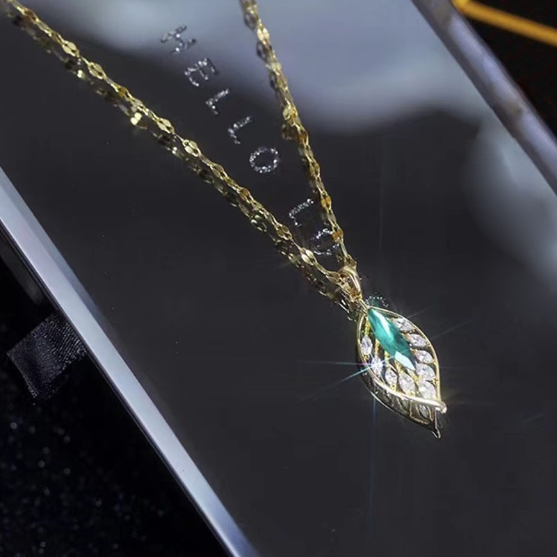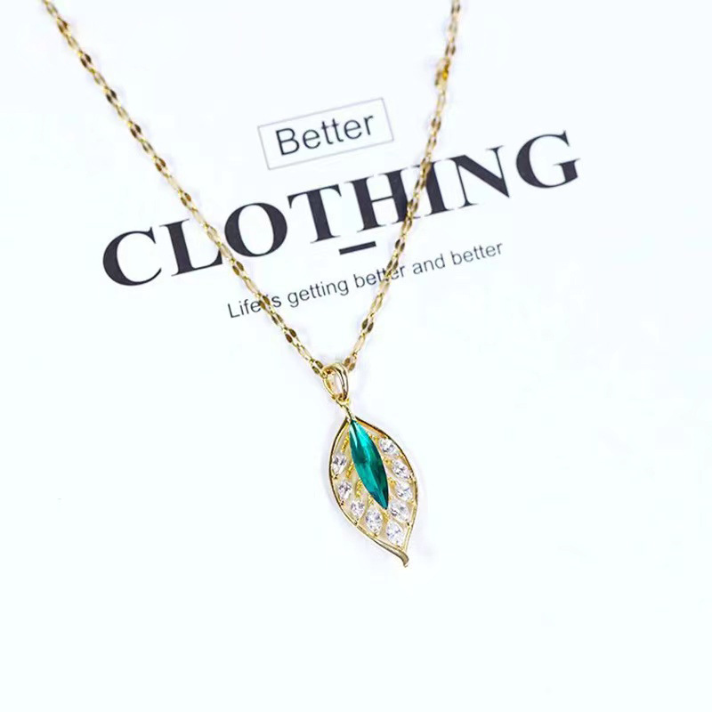 Thép titan bạc vỡ vài lượng vàng nhánh lá ngọc xương đòn dây chuyền nữ một lá phong phú đơn giản vi khảm zircon lá xanh vòng cổ