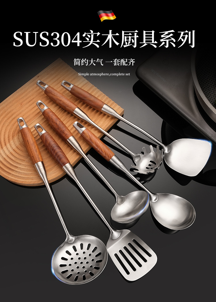 Thìa nhà bếp chống bỏng thép không gỉ 304 thìa súp thìa dụng cụ nhà bếp nấu ăn thìa xẻng bộ đồ nội thất gia đình Daquan
