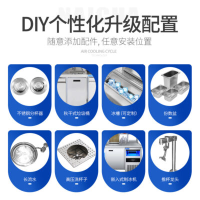 Thiết bị cửa hàng trà sữa trọn bộ mua sắm một lần bàn làm việc giữ lạnh tươi thương mại bàn thao tác bằng thép không gỉ thanh nước
