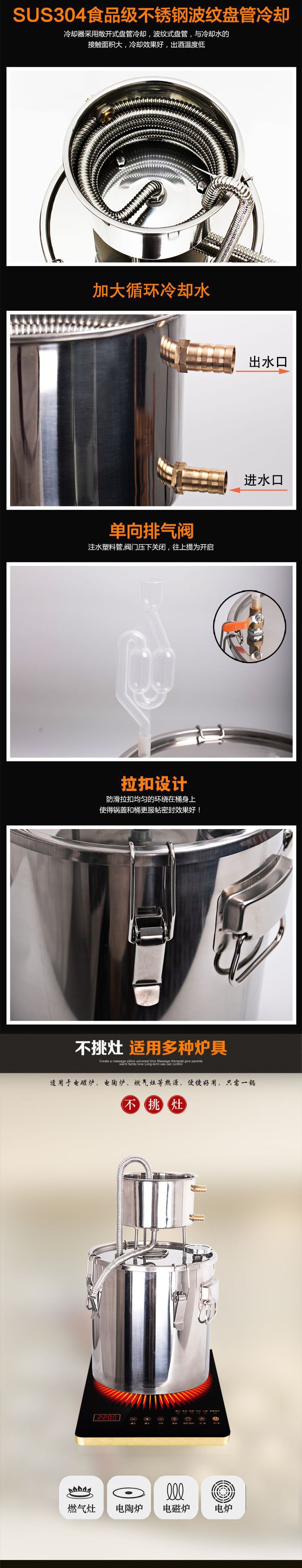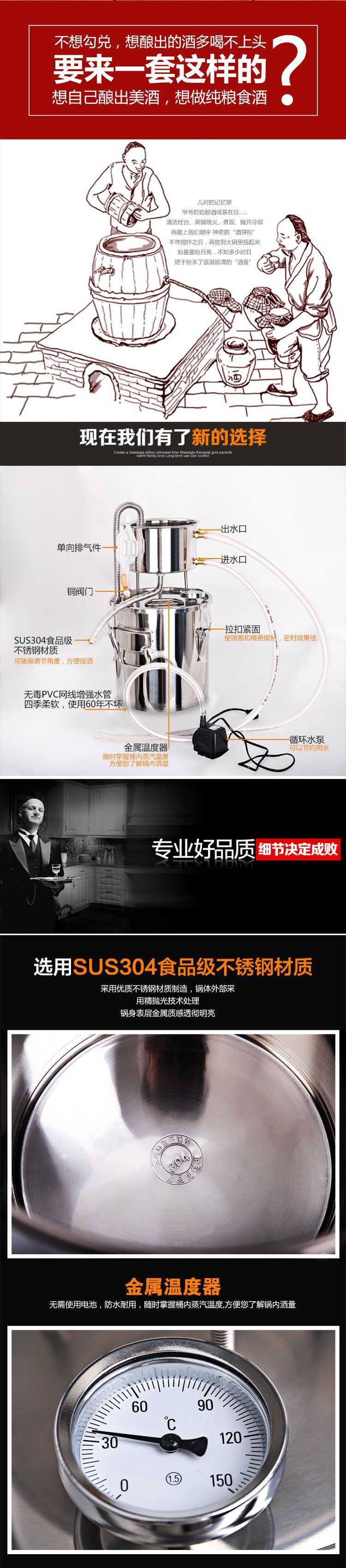 Thiết bị làm rượu hộ gia đình bằng thép không gỉ máy sương chưng cất nước hạt rượu một hộ gia đình nhỏ rang rượu nhỏ