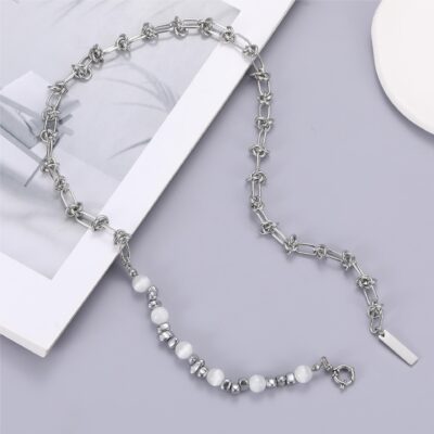 Thiết kế ban đầu cảm giác nam nữ thích hợp khảm cao cấp hợp thời trang thoáng mát bằng thép titan chống phai màu thắt nút gai vòng cổ opal