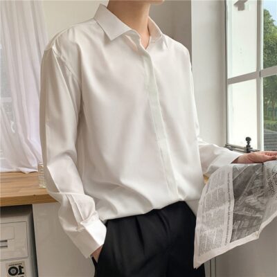 Thoải mái mặc áo sơ mi trắng nam tay dài xuân thu phiên bản Hàn Quốc dáng rộng đẹp trai hợp thời trang