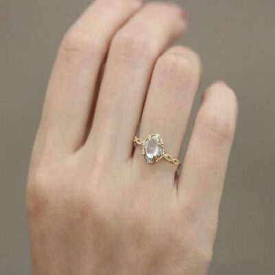 Thời trang Âu Mỹ cao cấp nhẫn kim cương đá mặt trăng lãng mạn cá tính ngọt ngào mùa hè bện nhẫn phù hợp với ngón trỏ