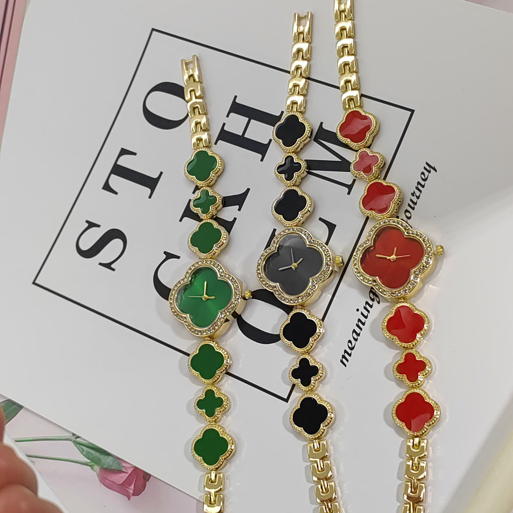 Thời Trang Cánh Hoa Cỏ Ba Lá Đồng Hồ Nữ Vòng Tay Cánh Hoa Đồng Hồ Nữ Vòng Tay Đồng Hồ Thạch Anh Nhà Sản Xuất Dropshipping