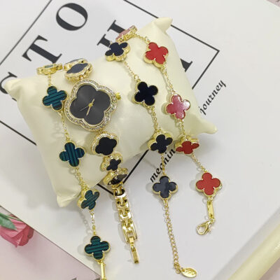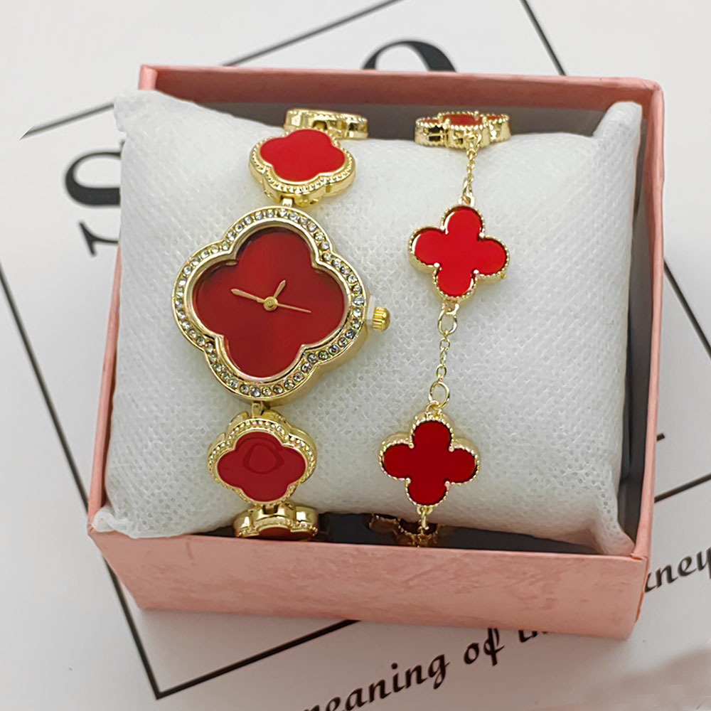 Thời Trang Cánh Hoa Cỏ Ba Lá Đồng Hồ Nữ Vòng Tay Cánh Hoa Đồng Hồ Nữ Vòng Tay Đồng Hồ Thạch Anh Nhà Sản Xuất Dropshipping