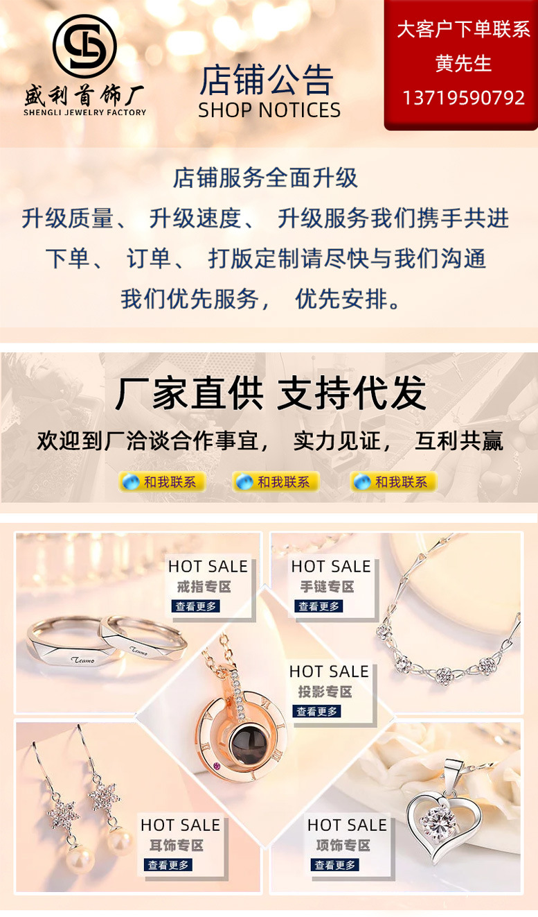 本店依托自有工厂,支持来样订做,来图订做,一对一设计,工厂工人上百名,出货快,有十多年的银饰生产加工经验。单品100件以上可订做,满300件起免收版费。为客户提供个性加工定制等服务商户只需提供产品样品或者产品细节清晰图片及其相关尺寸,我们就可以根据这些进行加工定制。生产之际商户需预付模具费用,0-100元不等,本店在通过倒模出来的样品进行进行沟通确认核实,再实行生产。 大额定制订单生产之前,商户根据定制的数量需预付20-50%的启动资金。