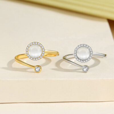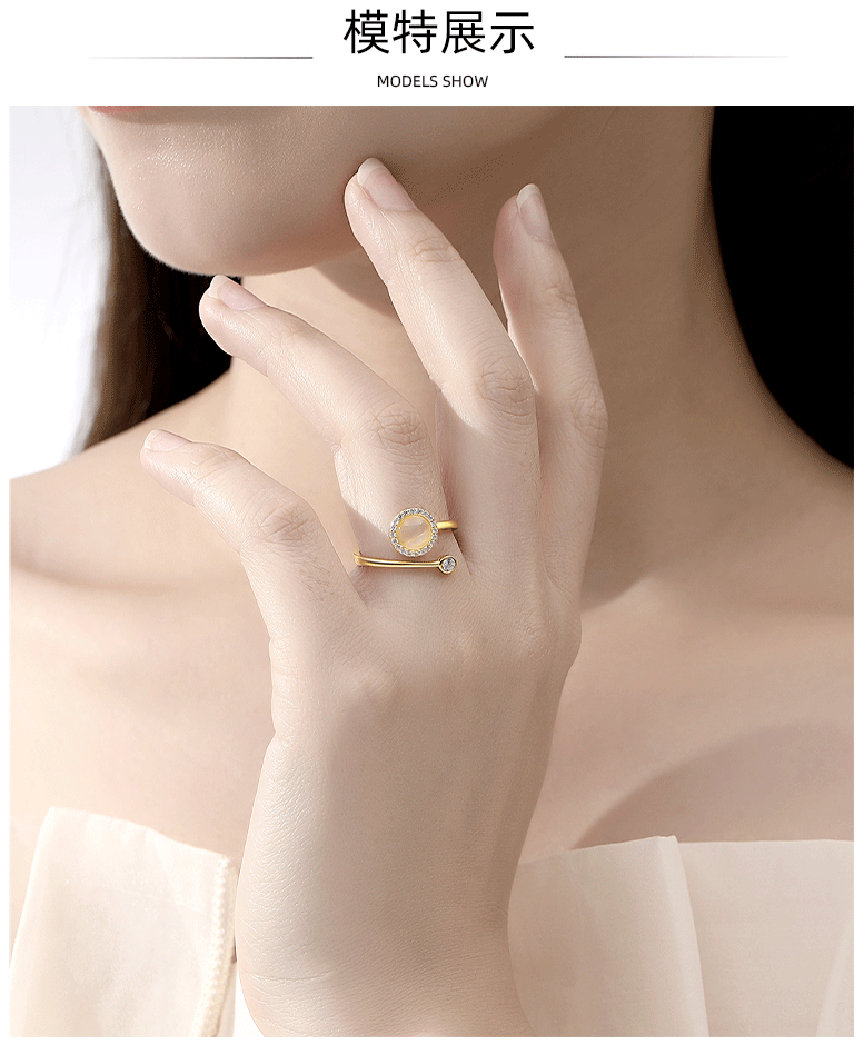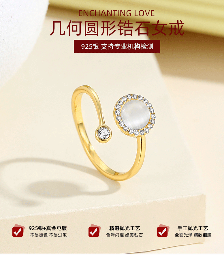 Thời trang Đẹp sang trọng phong cách nhẫn tròn đầy kim cương bạc S925 thiết kế hình học nhẫn nữ cao cấp khí chất trang sức nữ thanh lịch