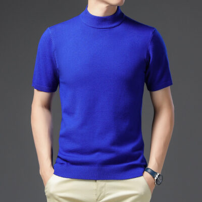 Thời trang đơn giản nam dệt kim màu trơn nửa cao cổ áo len ngắn tay thu đông đáy áo thời trang áo len nam phù hợp với mọi lứa tuổi