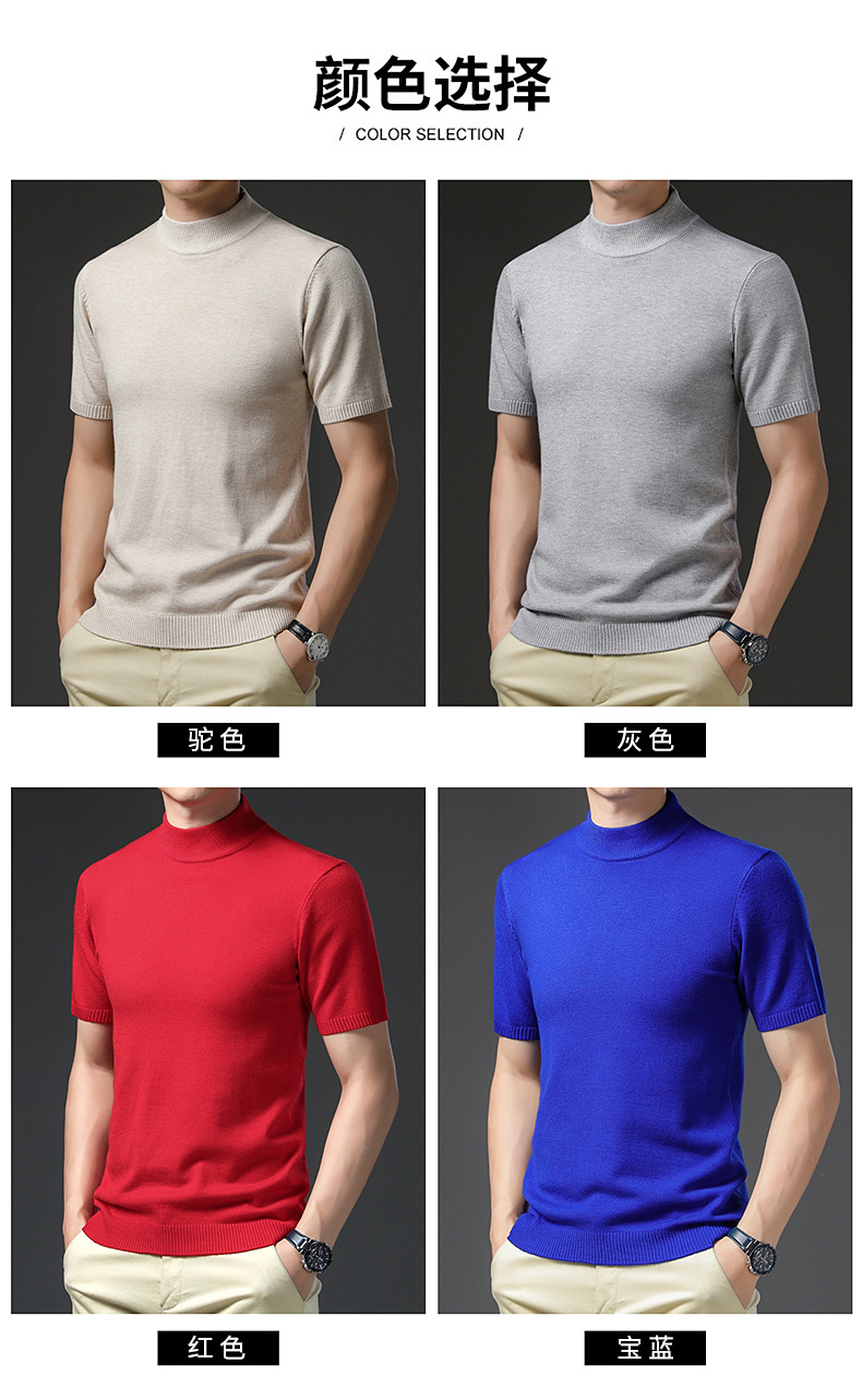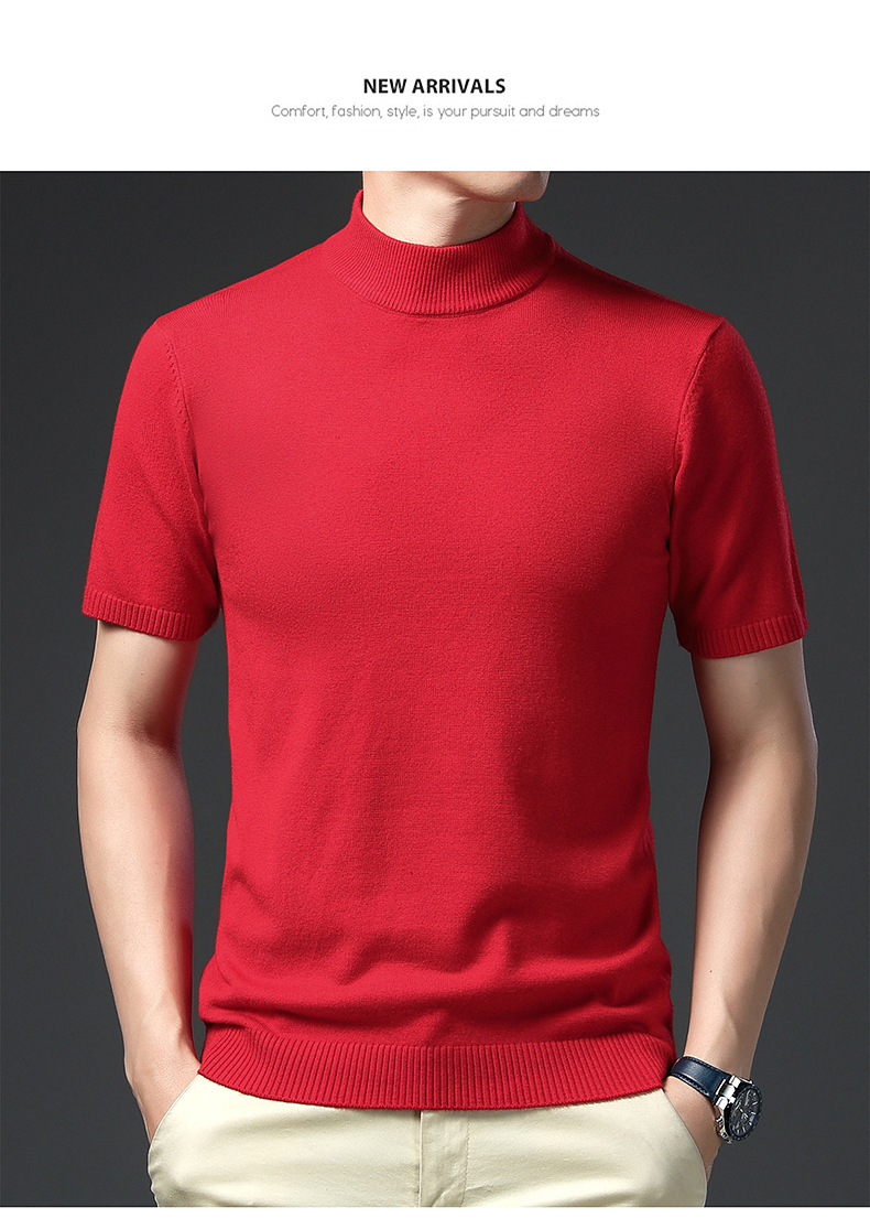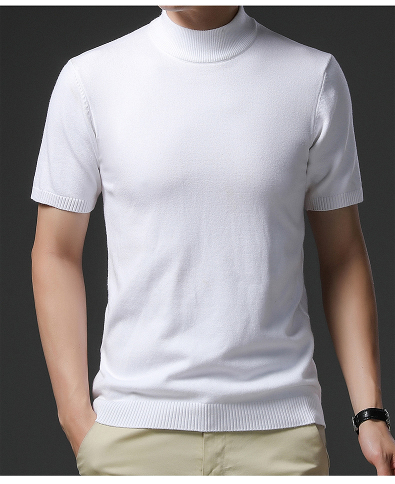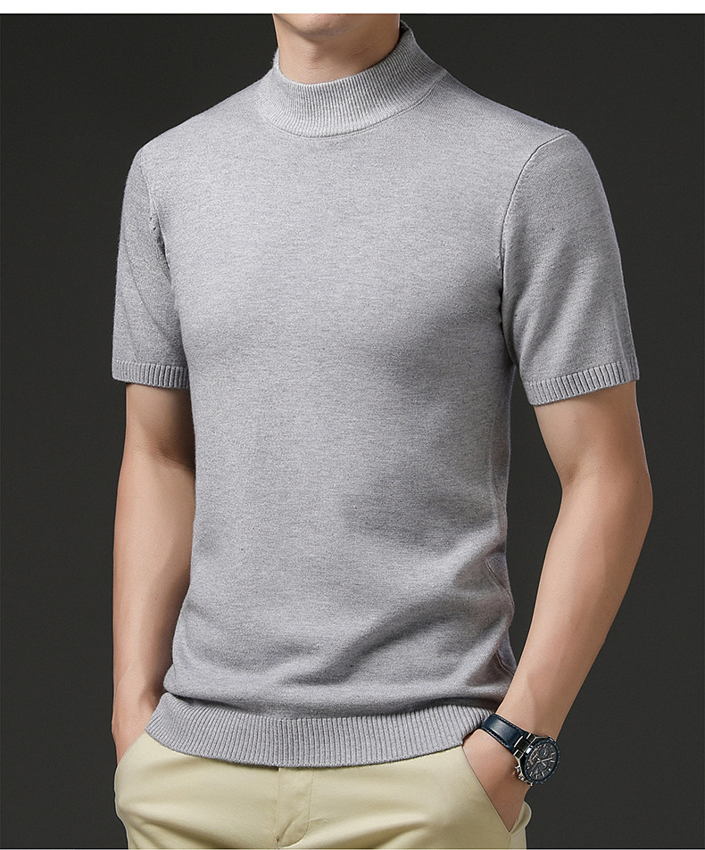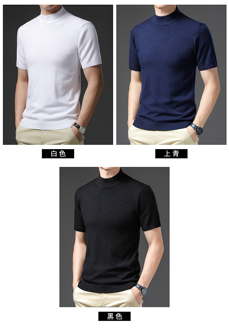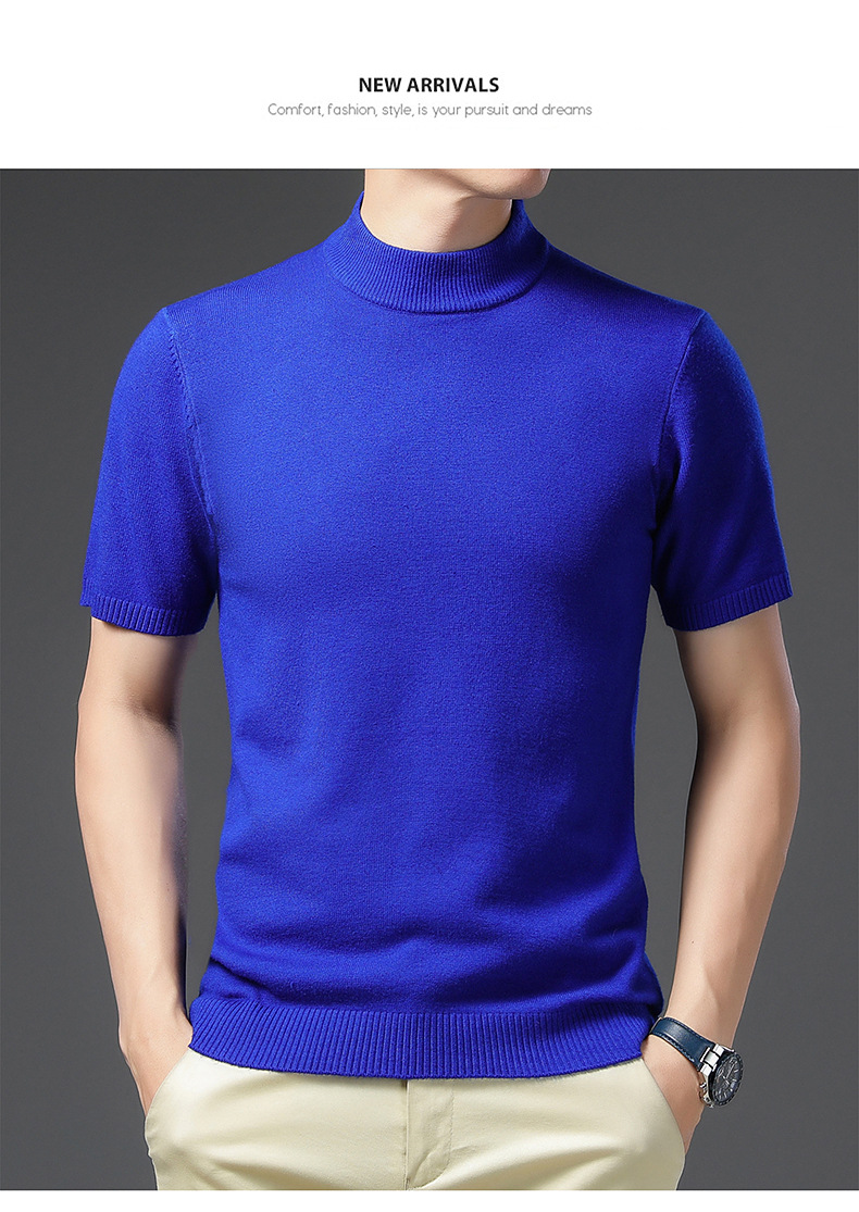 Thời trang đơn giản nam dệt kim màu trơn nửa cao cổ áo len ngắn tay thu đông đáy áo thời trang áo len nam phù hợp với mọi lứa tuổi