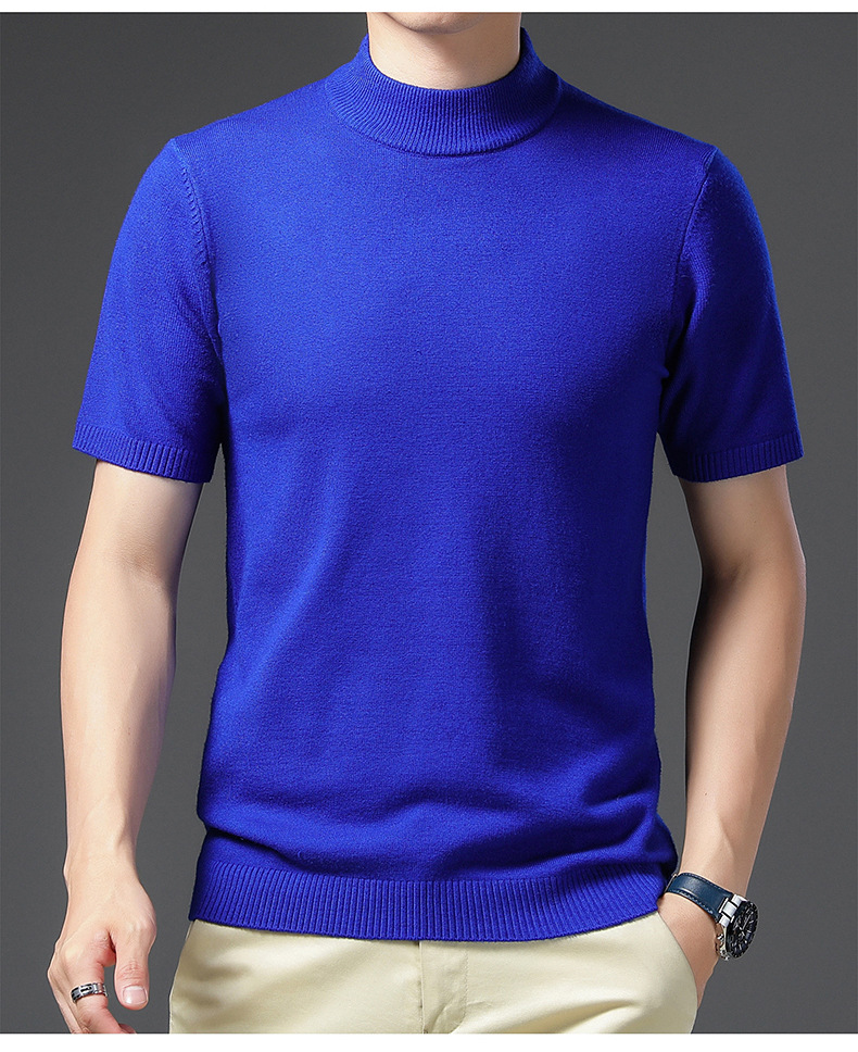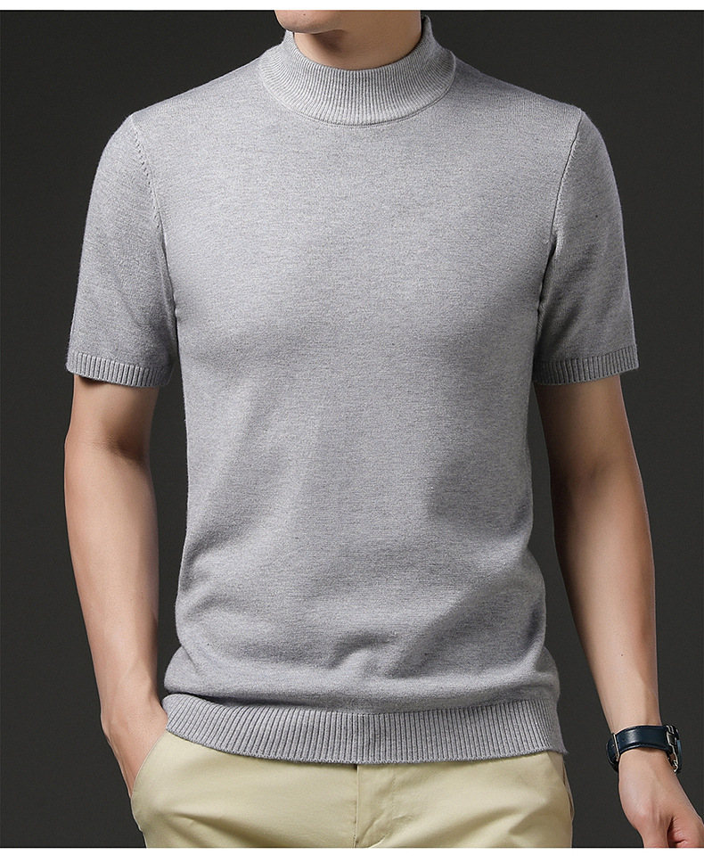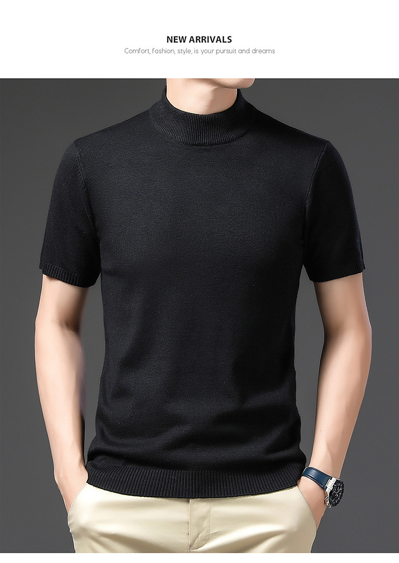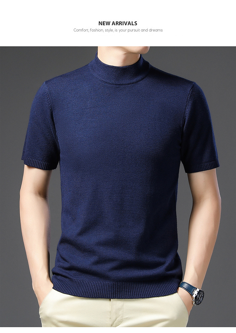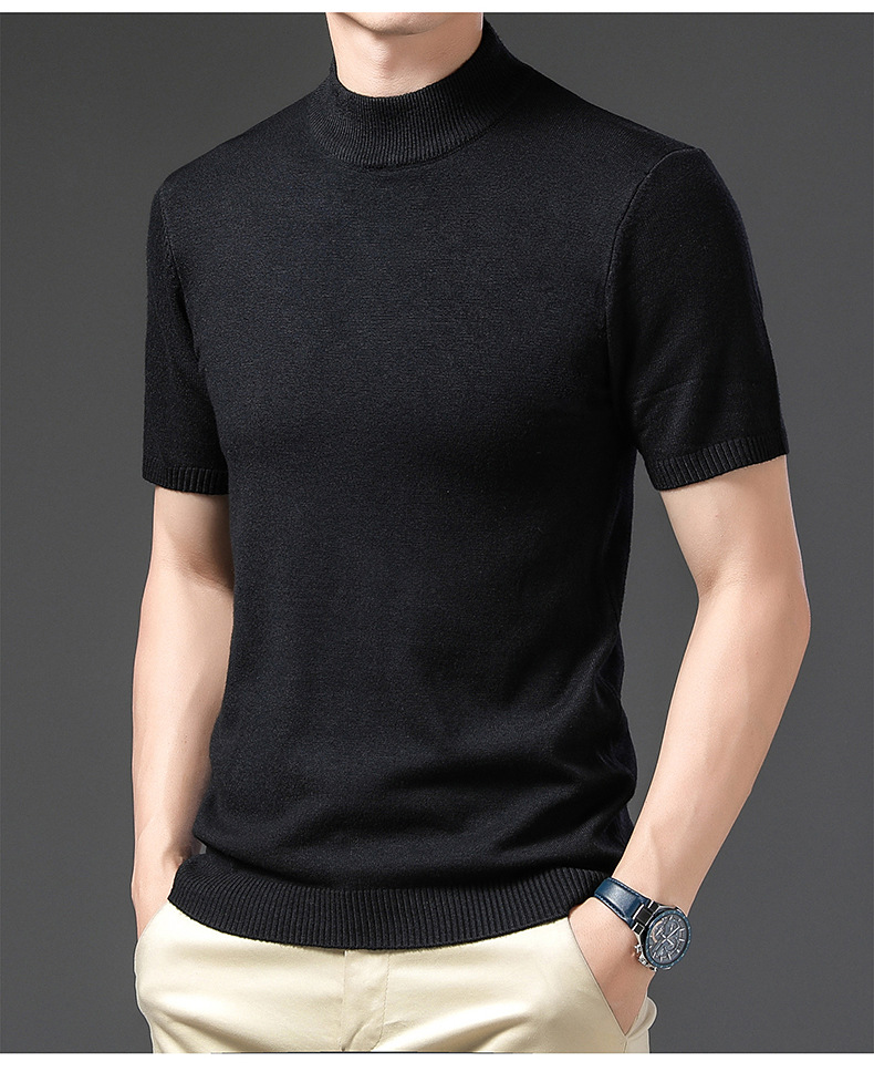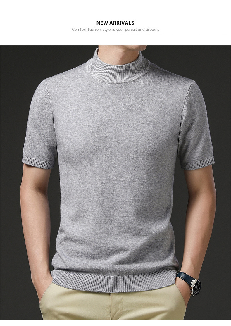 Thời trang đơn giản nam dệt kim màu trơn nửa cao cổ áo len ngắn tay thu đông đáy áo thời trang áo len nam phù hợp với mọi lứa tuổi