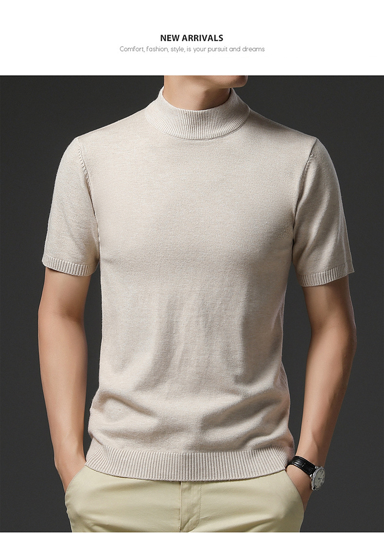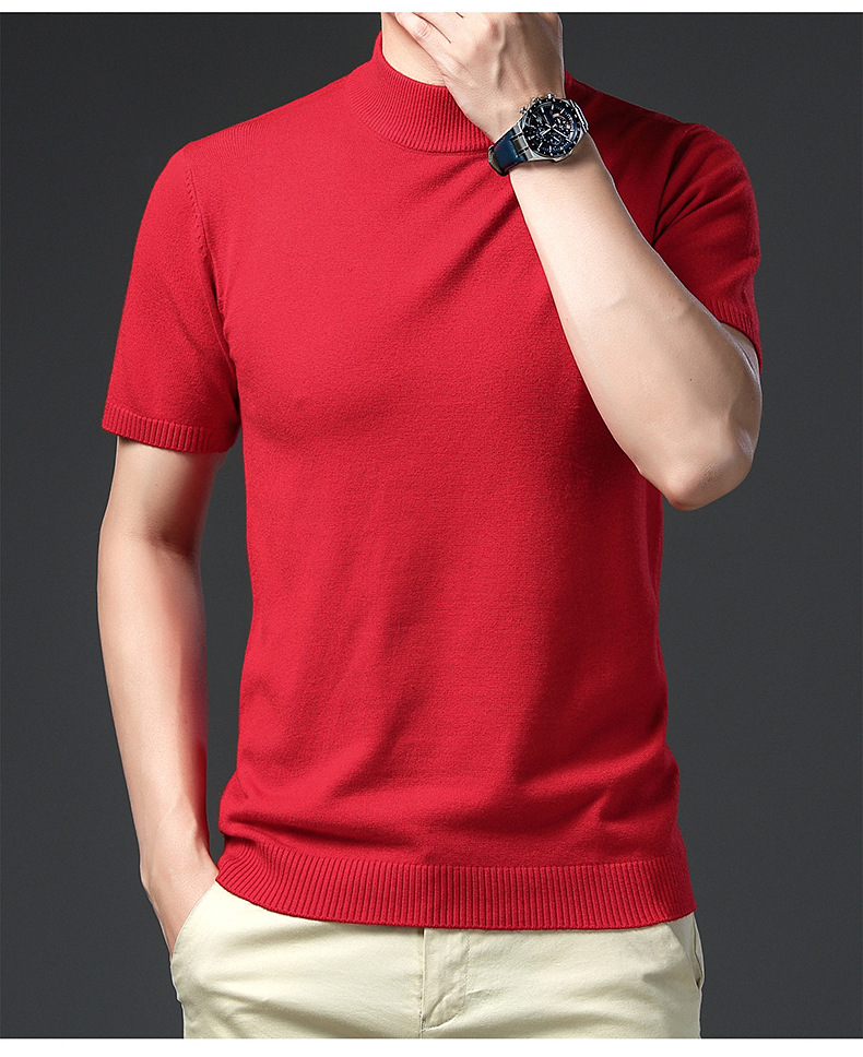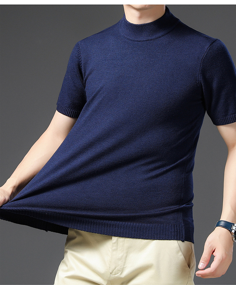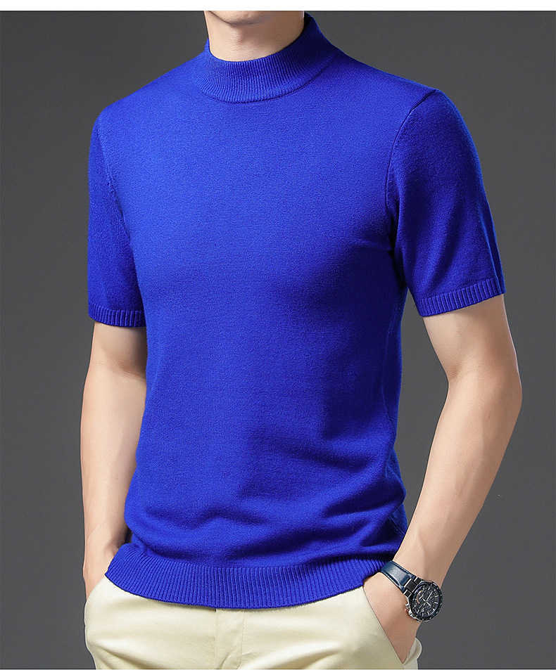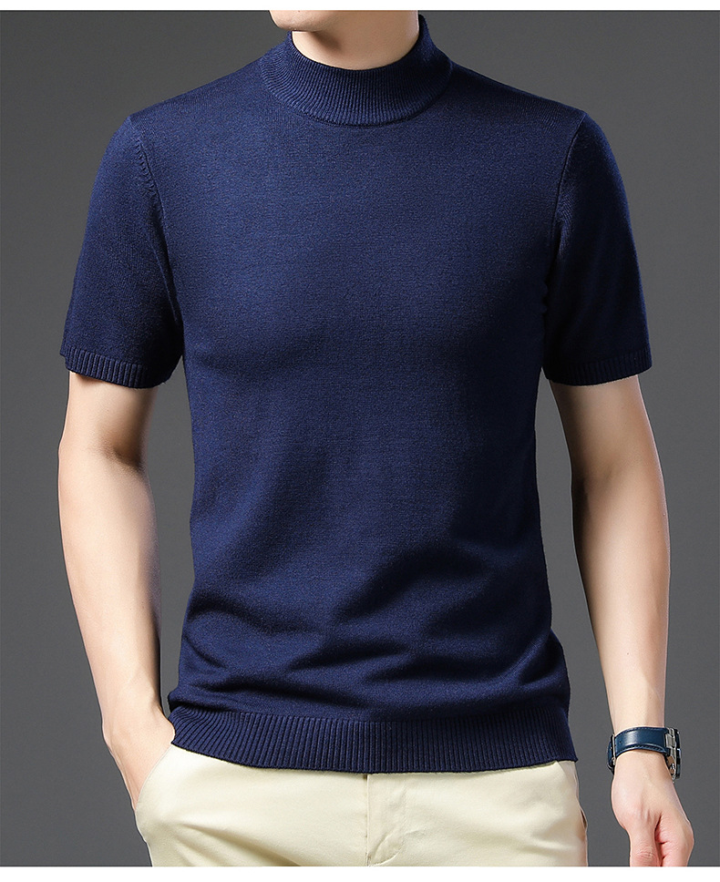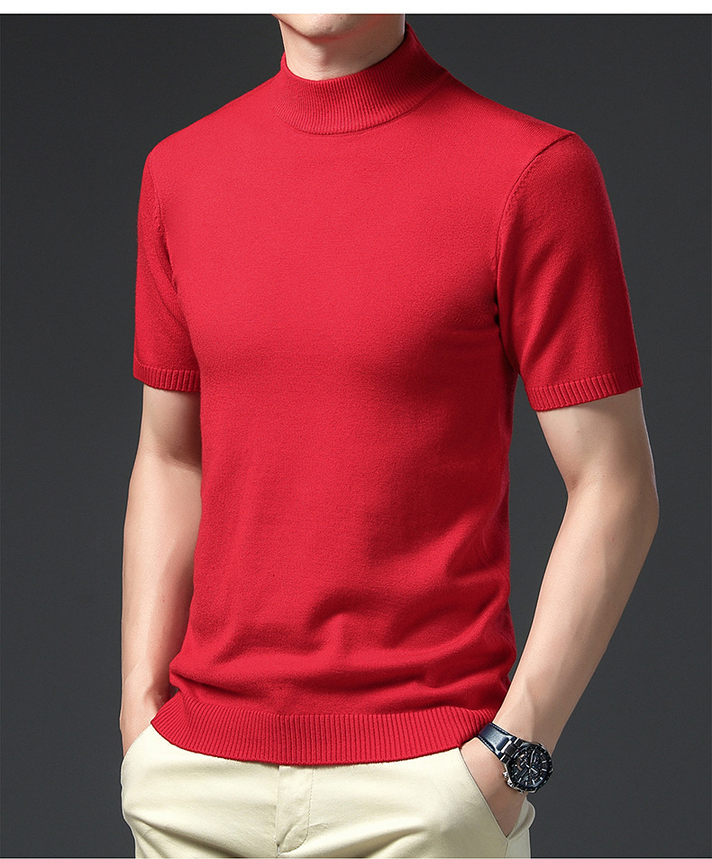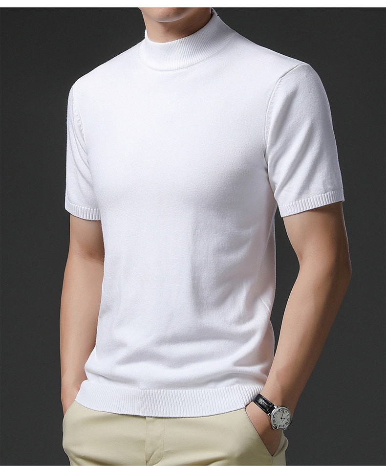 Thời trang đơn giản nam dệt kim màu trơn nửa cao cổ áo len ngắn tay thu đông đáy áo thời trang áo len nam phù hợp với mọi lứa tuổi