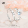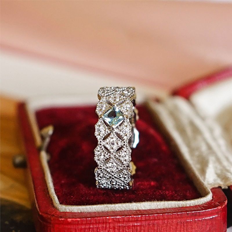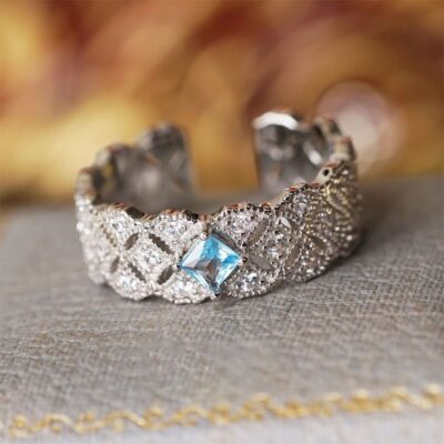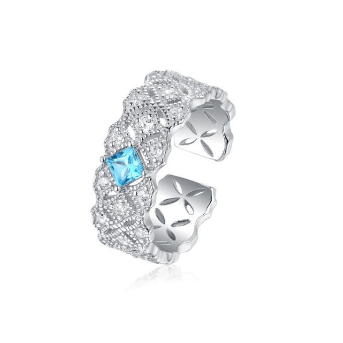 Thời trang đơn giản và tinh tế màu xanh zircon thiểu số mở nhẫn rộng nữ có thể điều chỉnh vòng ren cổ điển retro nữ