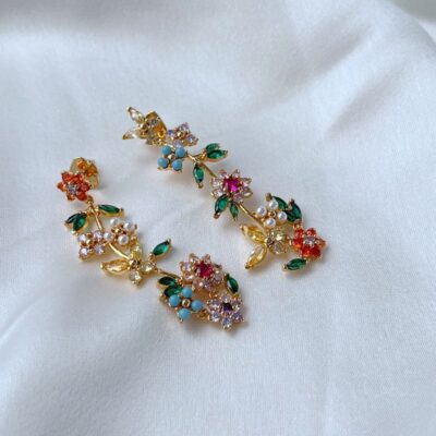 Thời trang mới ánh sáng sang trọng đi lại ngách thiết kế bất đối xứng siêu zircon khảm hoa bướm bông tai vòng cổ