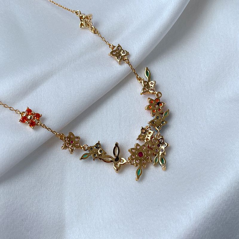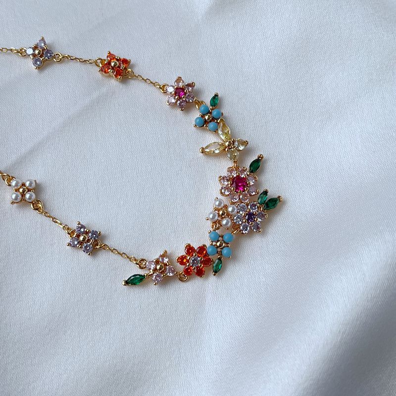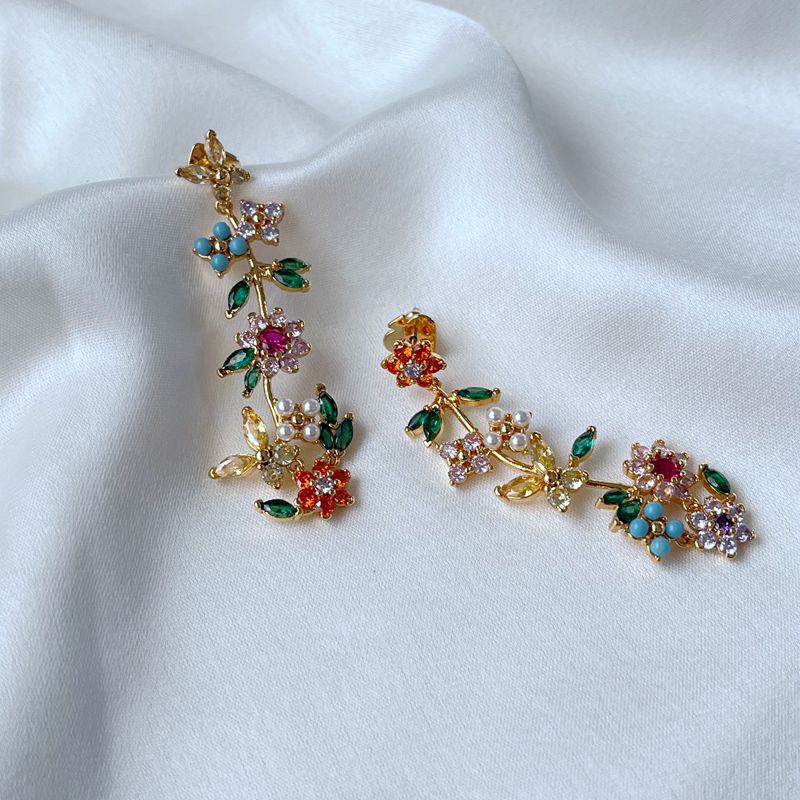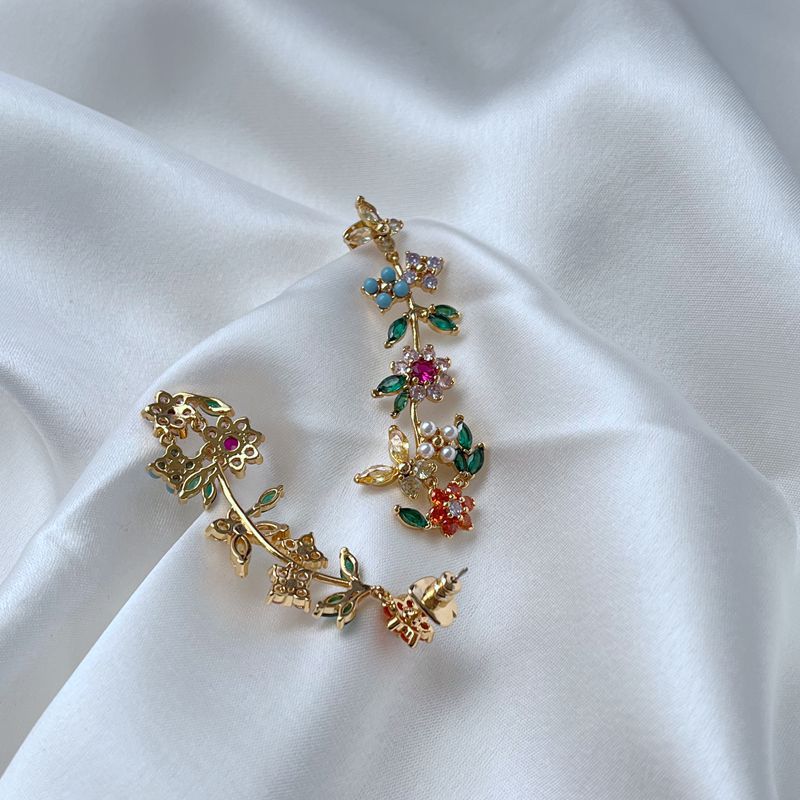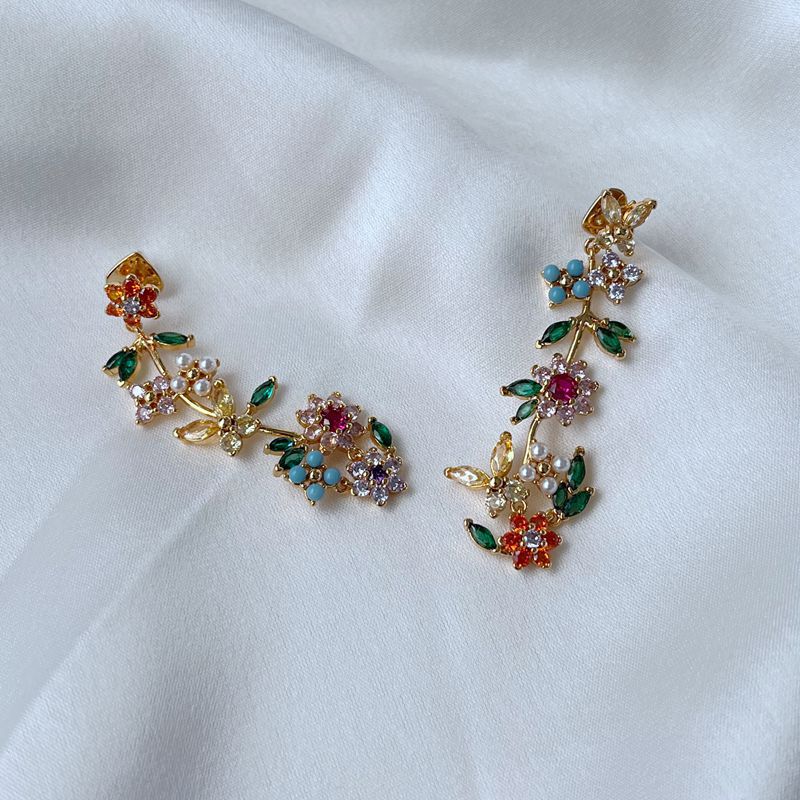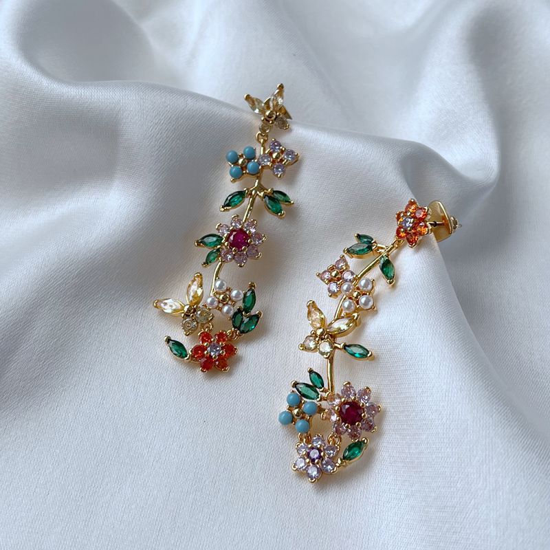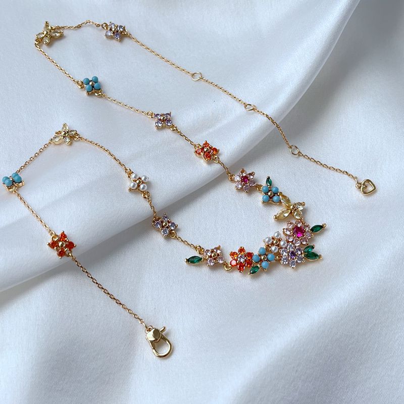 Thời trang mới ánh sáng sang trọng đi lại ngách thiết kế bất đối xứng siêu zircon khảm hoa bướm bông tai vòng cổ
