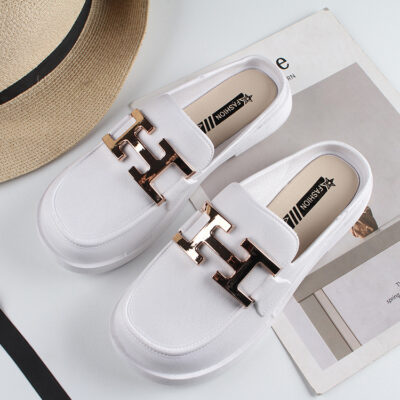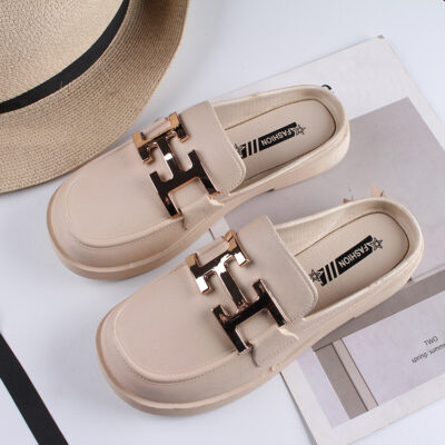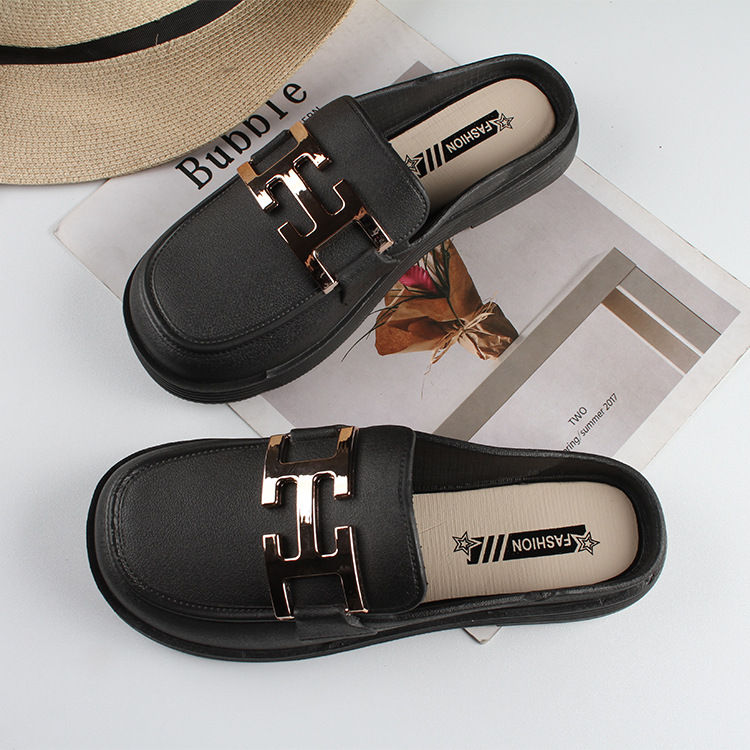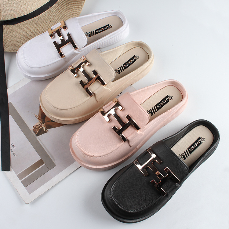 Thời Trang Mới Dép Nữ Mặc Ngoài Mùa Hè Bao Đầu Nửa Kéo Giày Lười Đế Bằng Giày Xăng Đan Nữ Đáy Dày