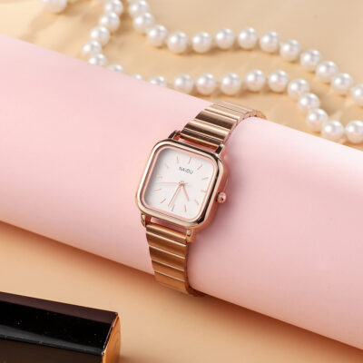 Thời trang mới đồng hồ thạch anh nữ đơn giản vàng hồng IP mạ điện phong cách đại học đồng hồ nhỏ tươi thay mặt cho