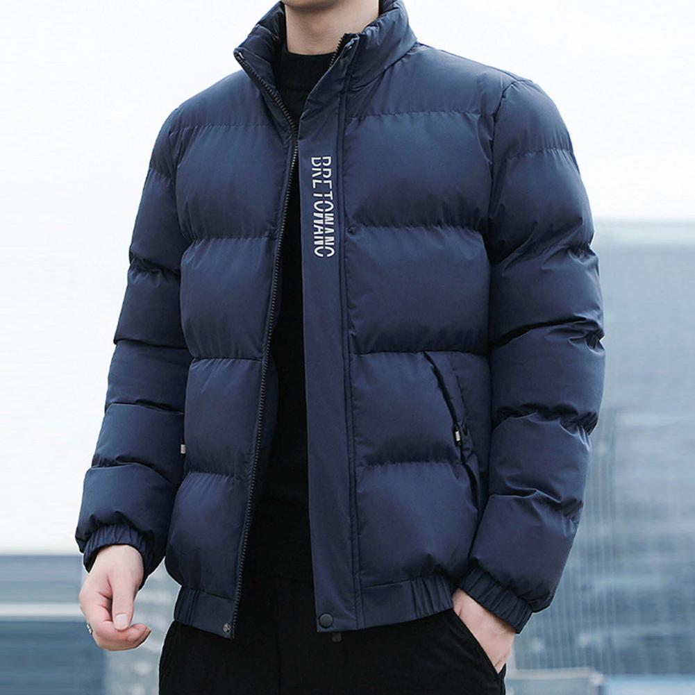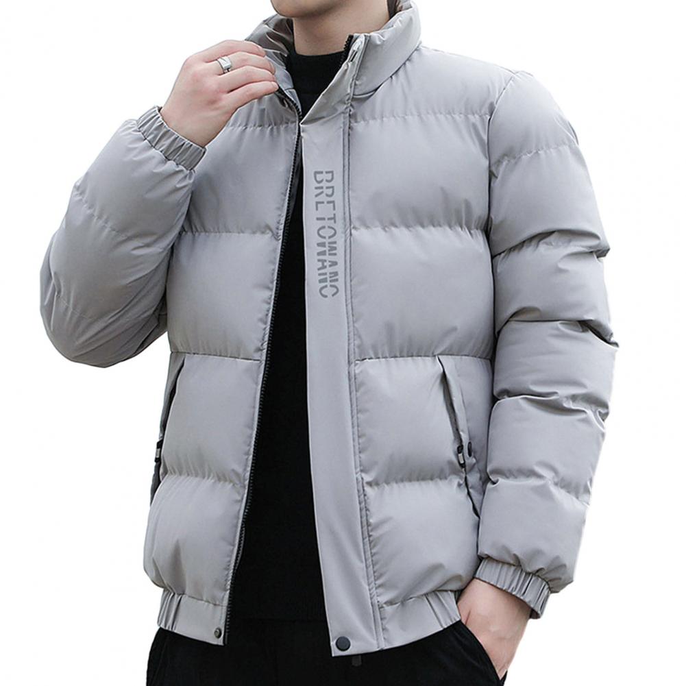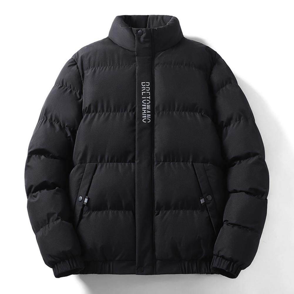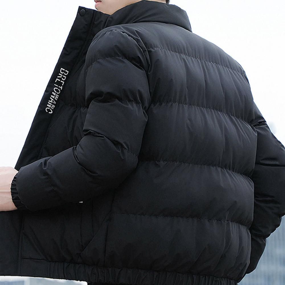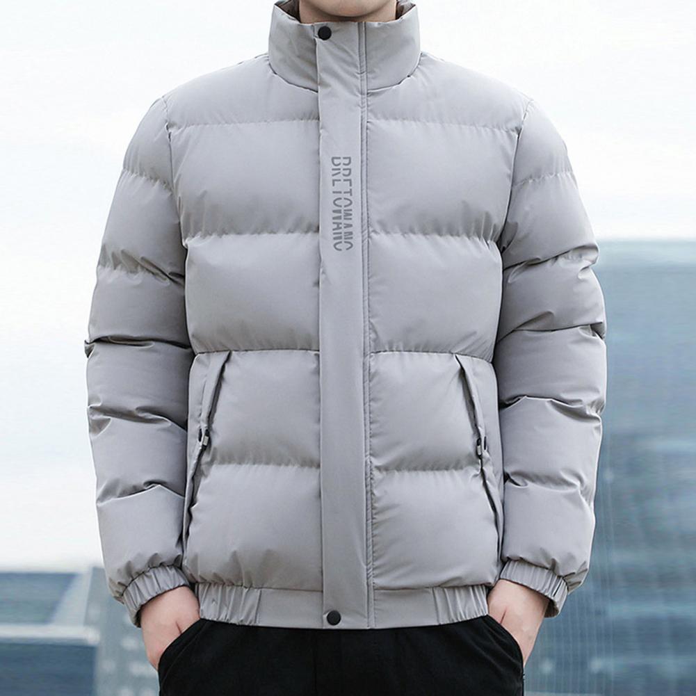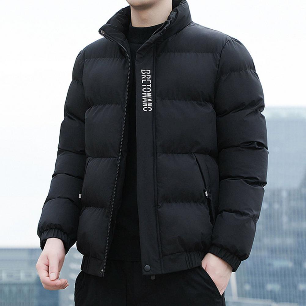 Stylish Winter Men Cotton Jacket Windproof Design with Pocket Letter Printed Lapel Collar Short Casual Handsome Cotton Coat Jacket