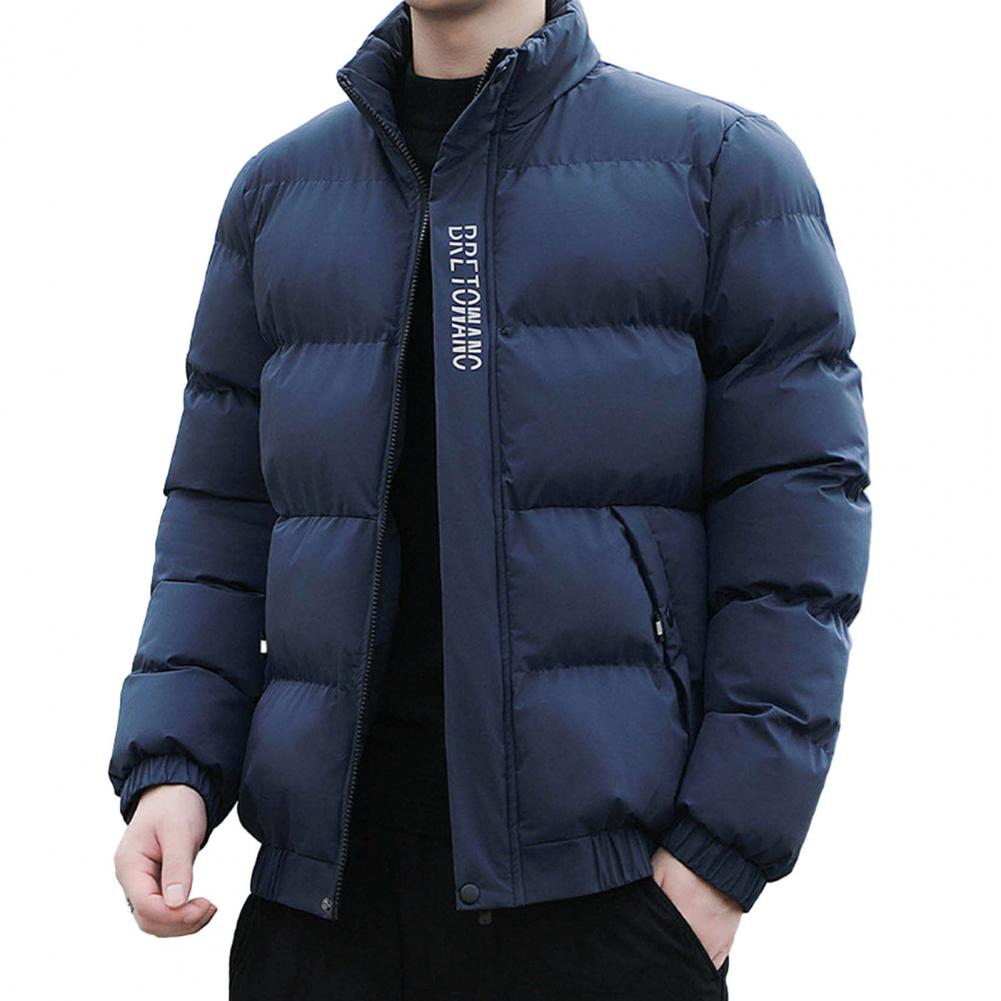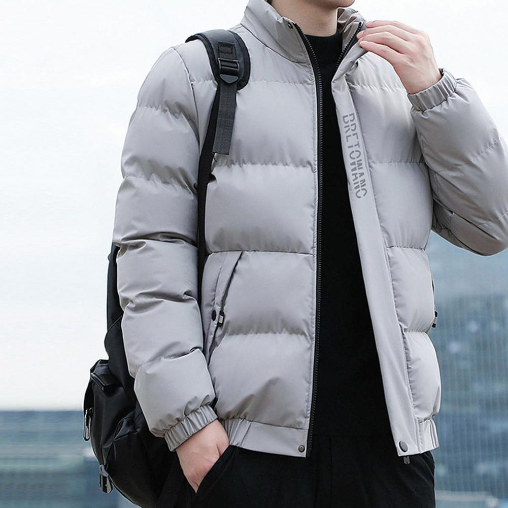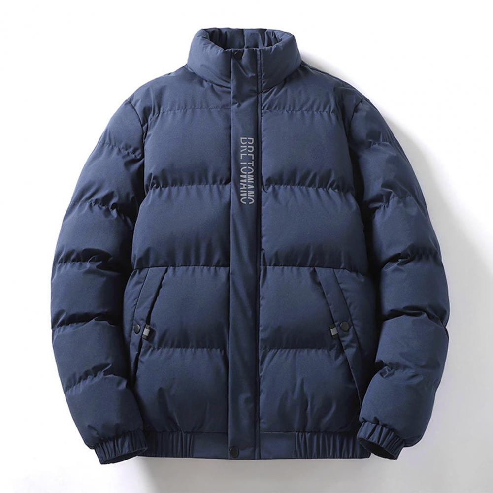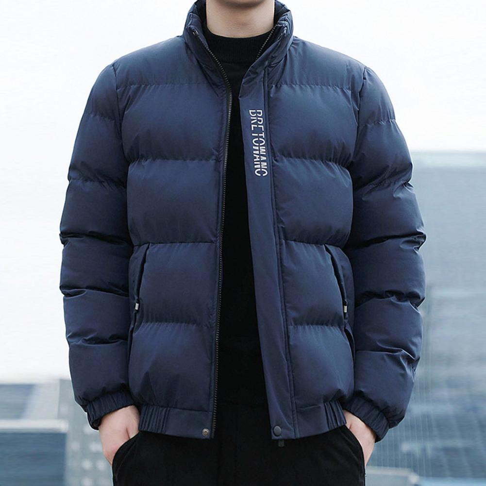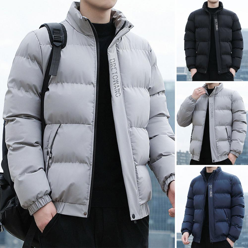 Stylish Winter Men Cotton Jacket Windproof Design with Pocket Letter Printed Lapel Collar Short Casual Handsome Cotton Coat Jacket
