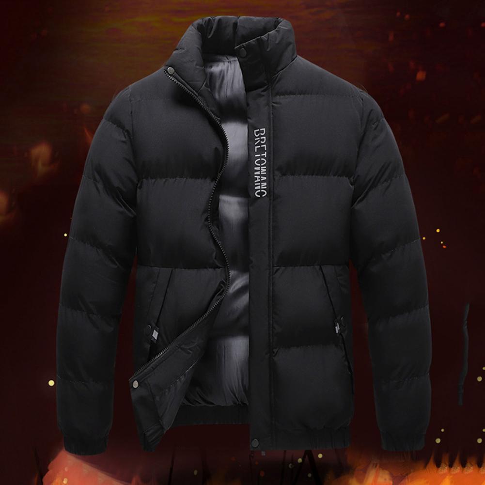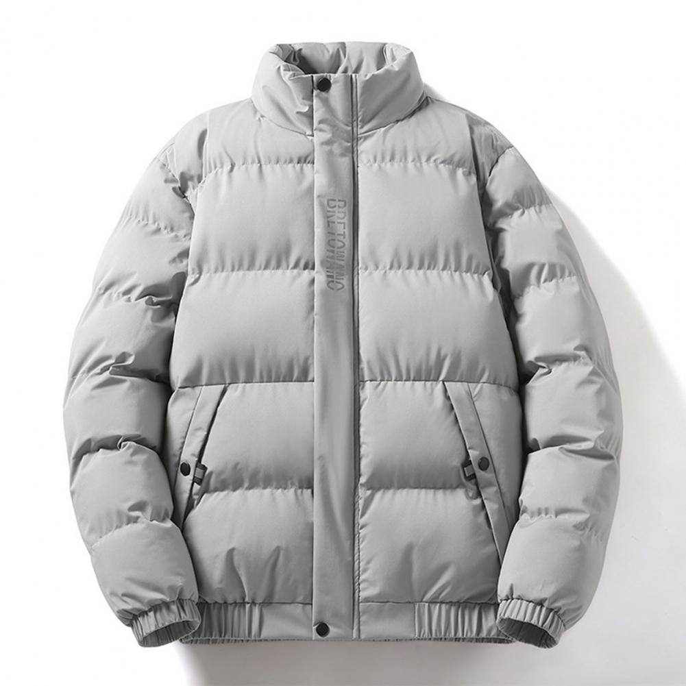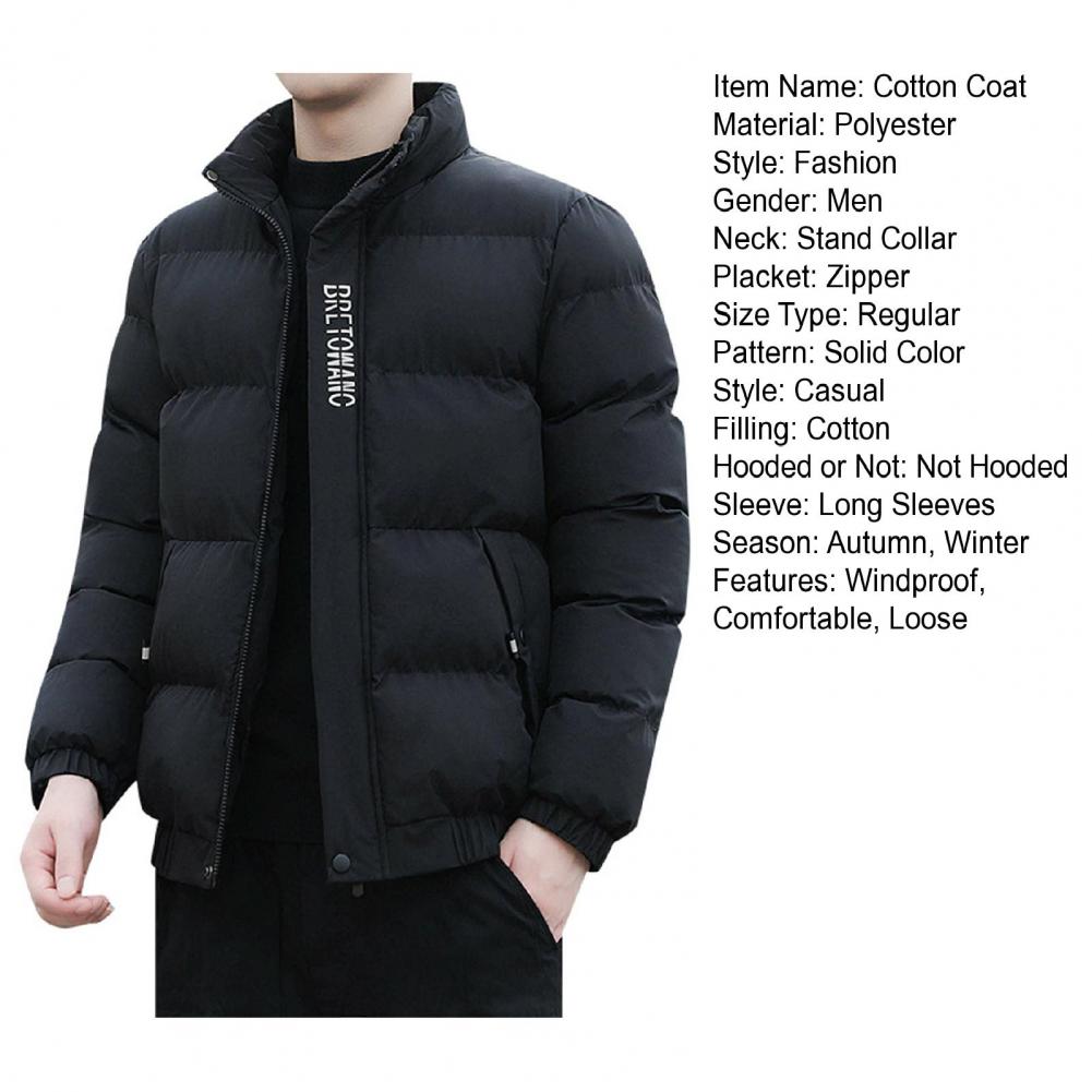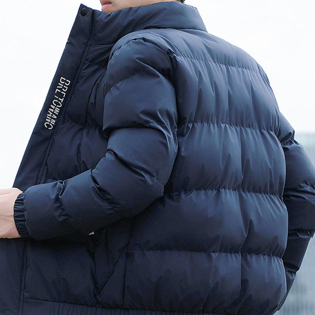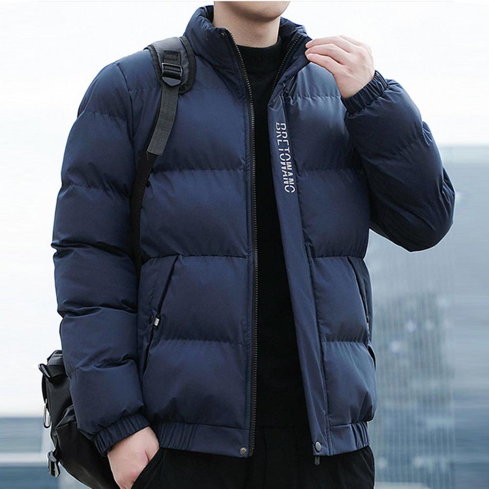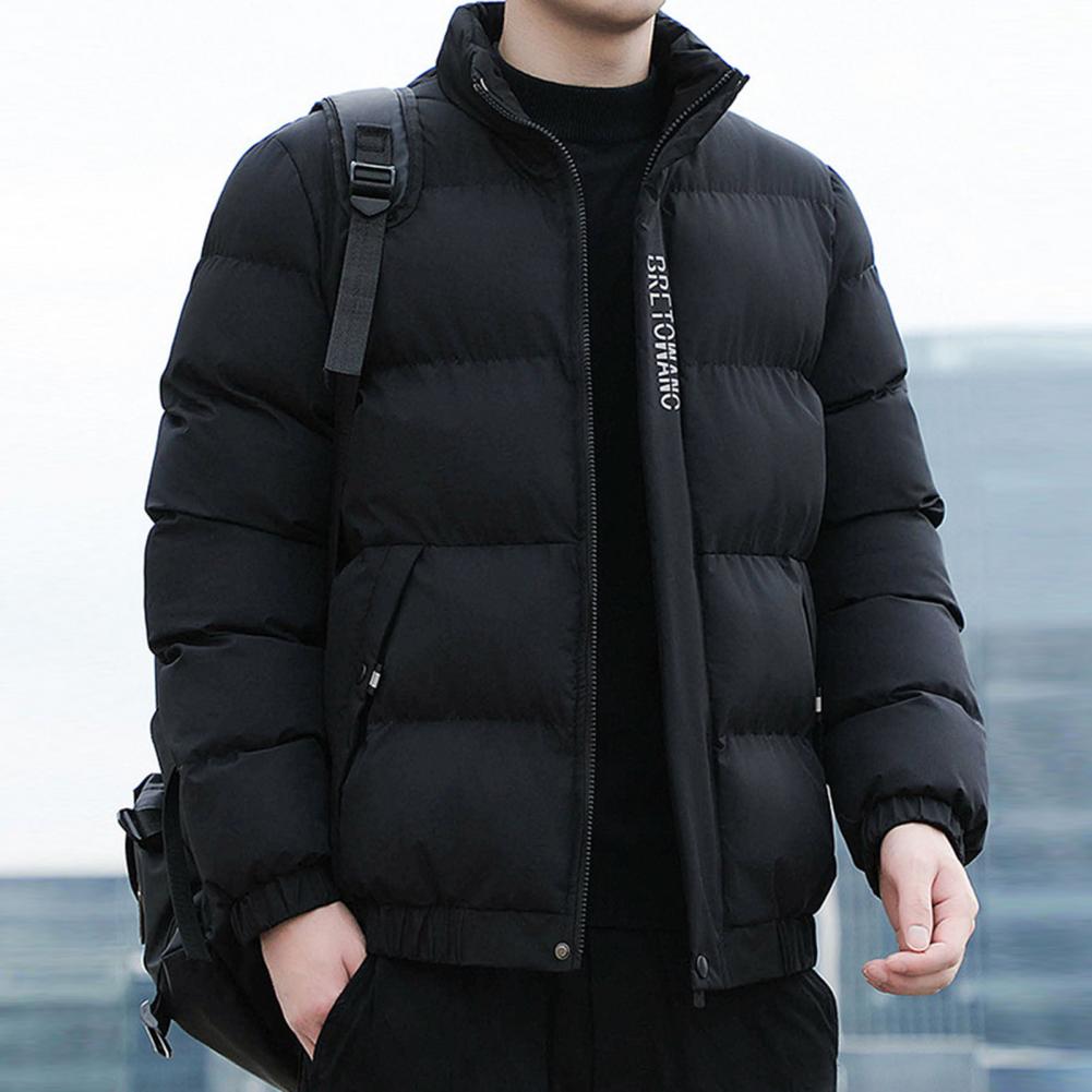Stylish Winter Men Cotton Jacket Windproof Design with Pocket Letter Printed Lapel Collar Short Casual Handsome Cotton Coat Jacket