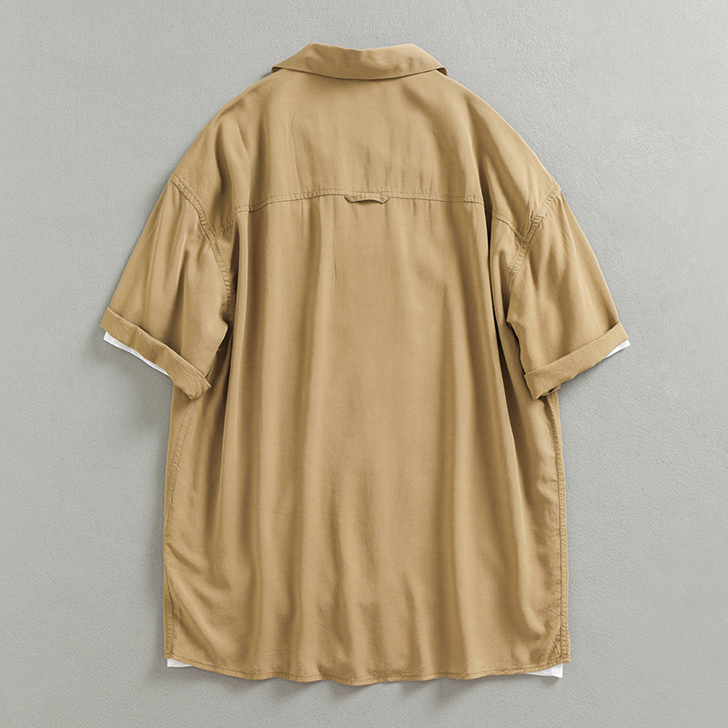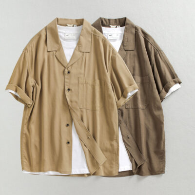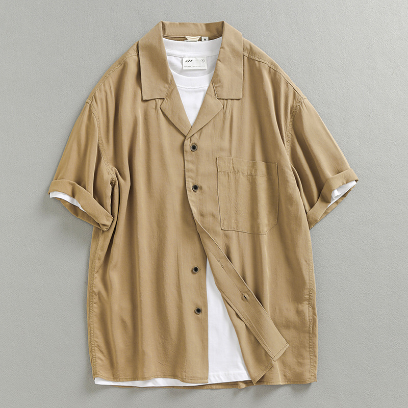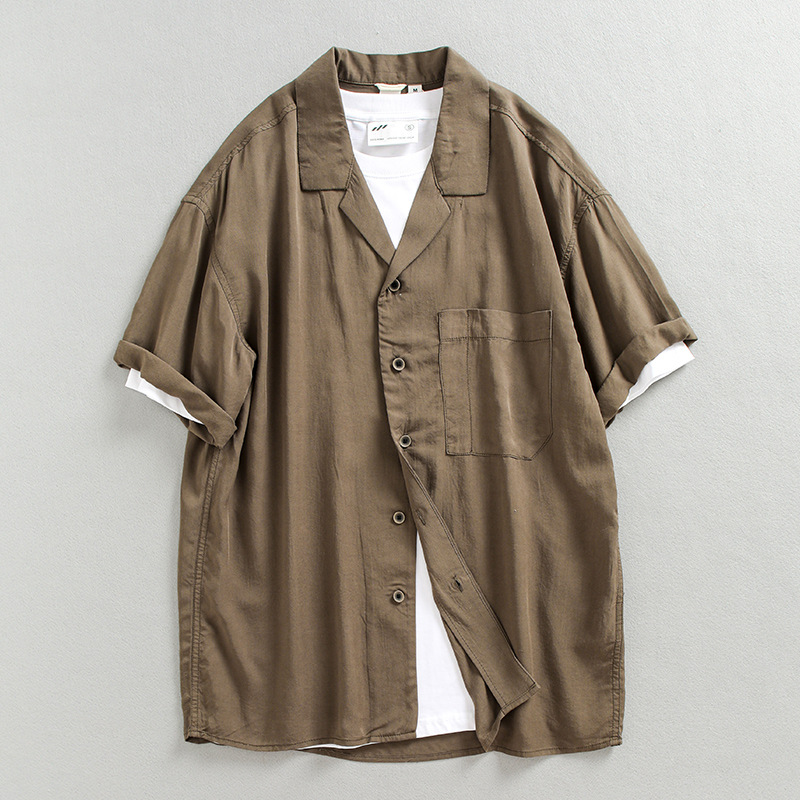 Thời trang mùa hè tươi mát Cuba cổ áo sơ mi nam ngắn tay xếp nếp thoải mái áo sơ mi mỏng hợp thời trang nam 2212