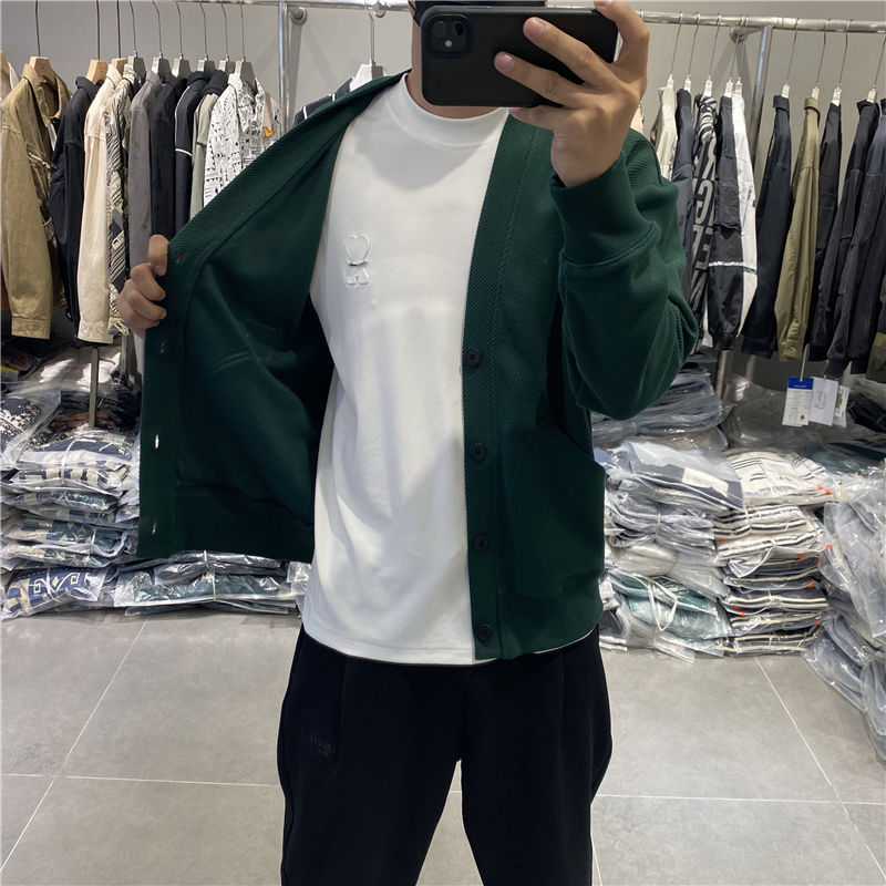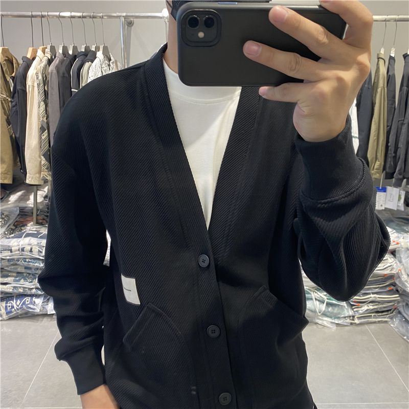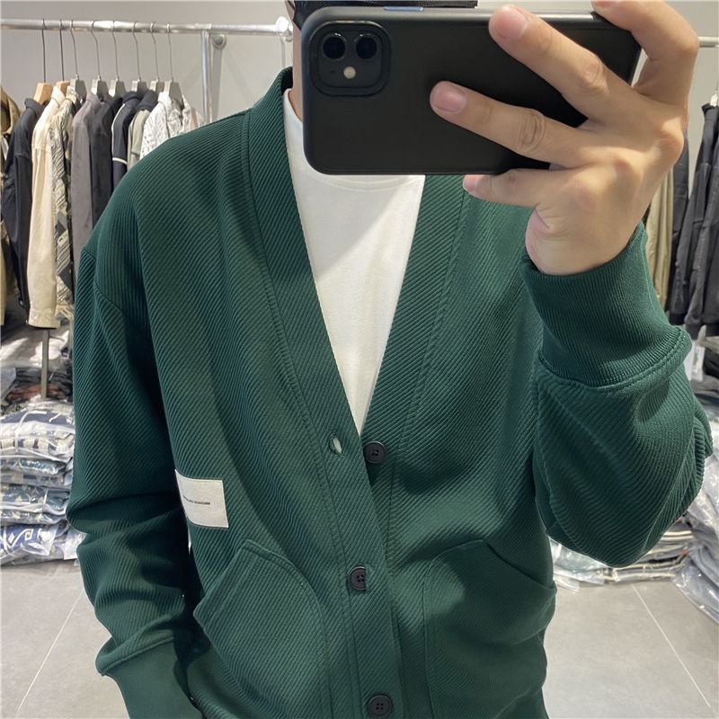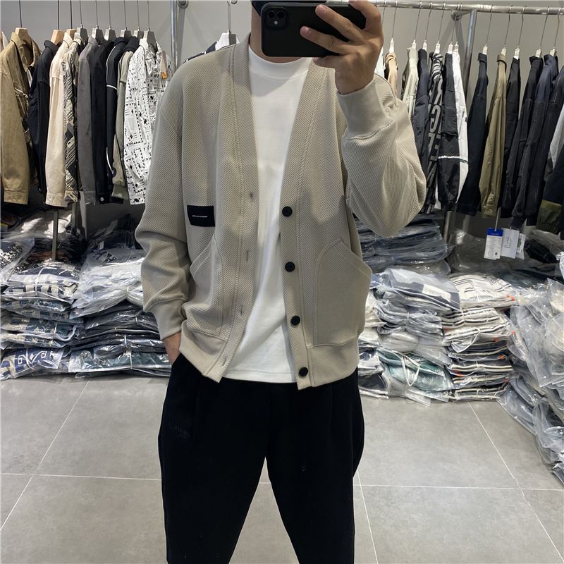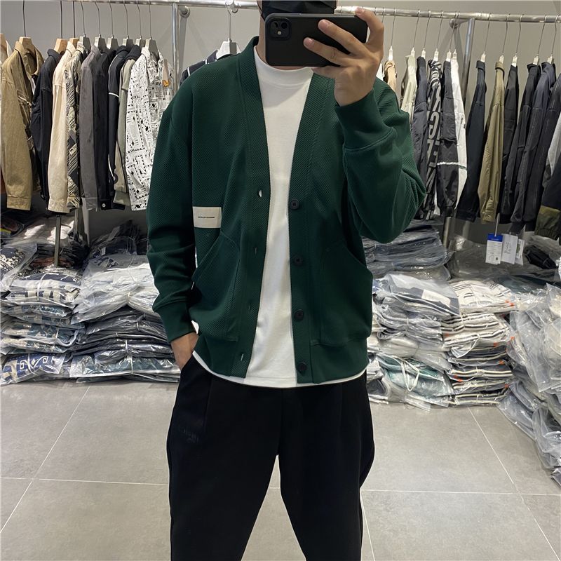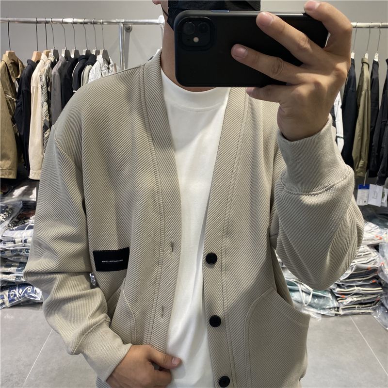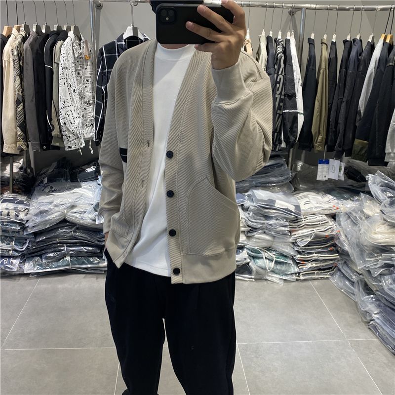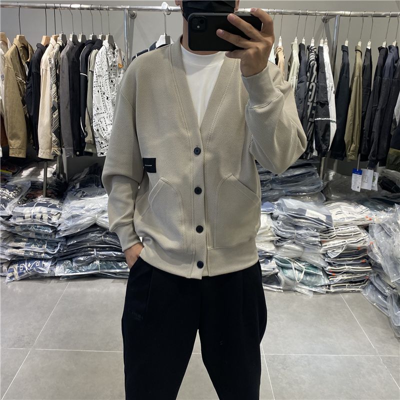 Thời Trang Nam Cổ Chữ V Màu Dệt Kim Áo Khoác Cardigan Mùa Thu Mới Đơn Giản Và Đa Năng Thường Ngày Miếng Dán Áo Khoác Ngoài