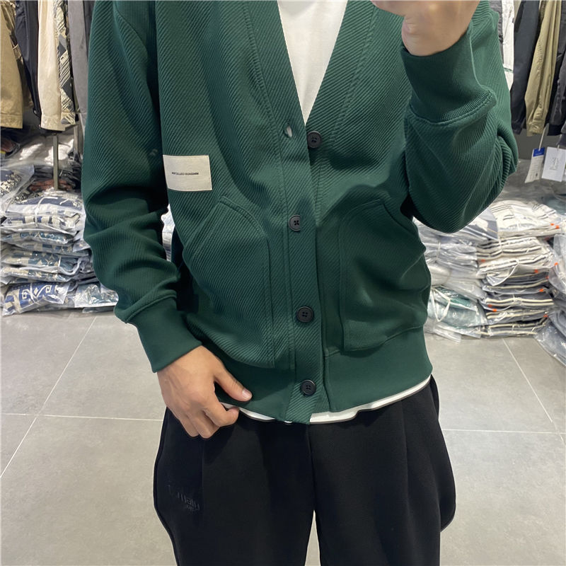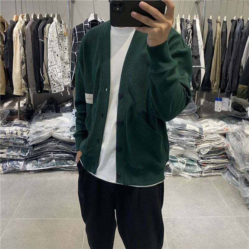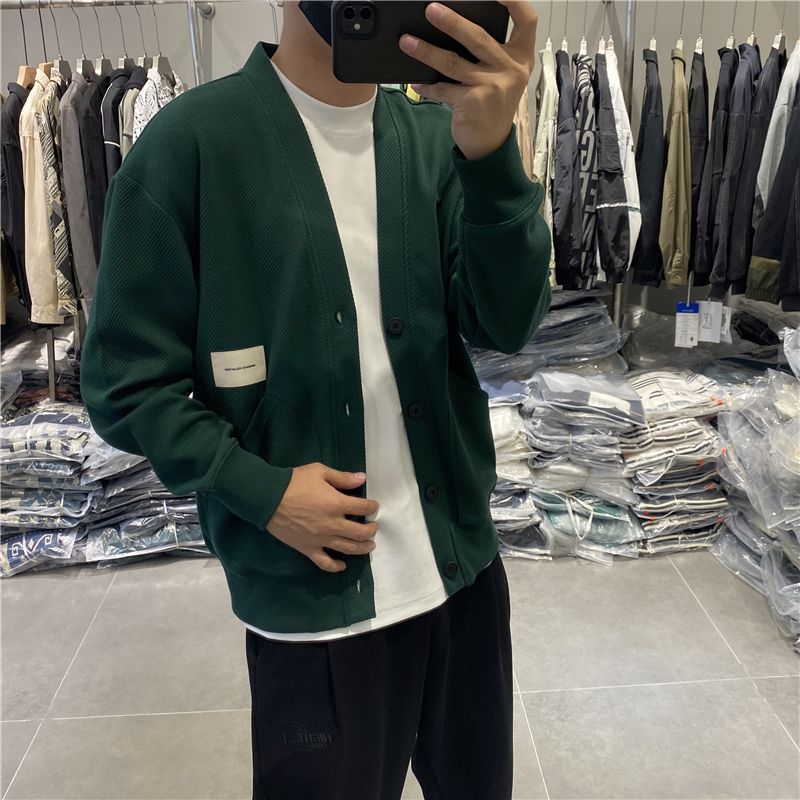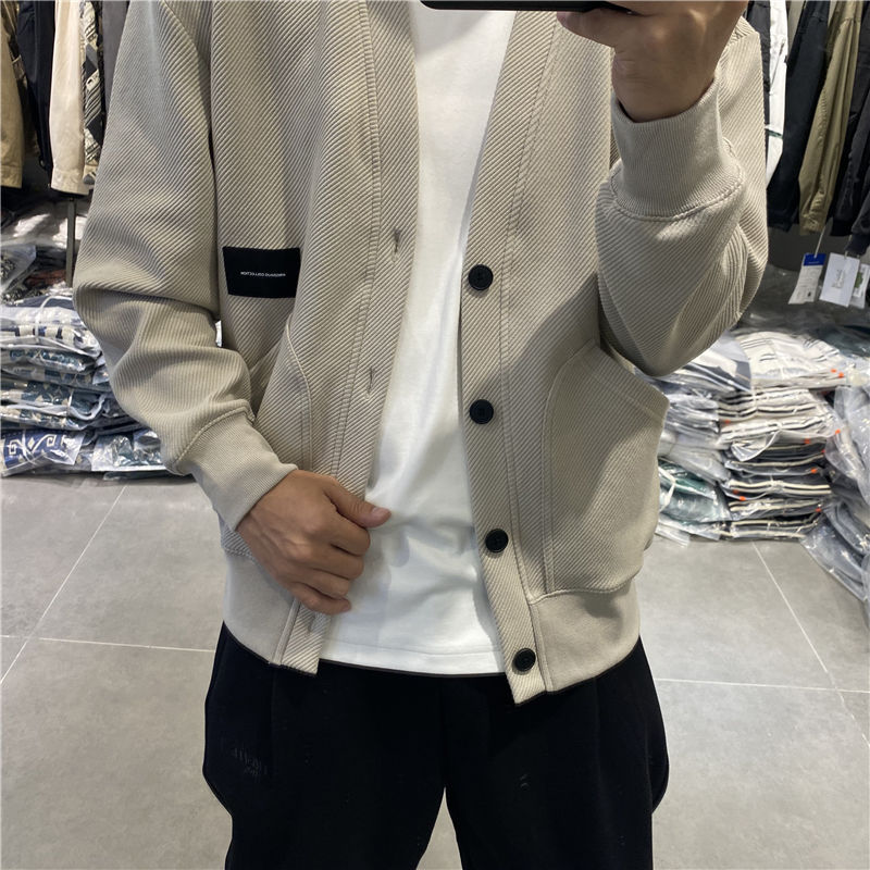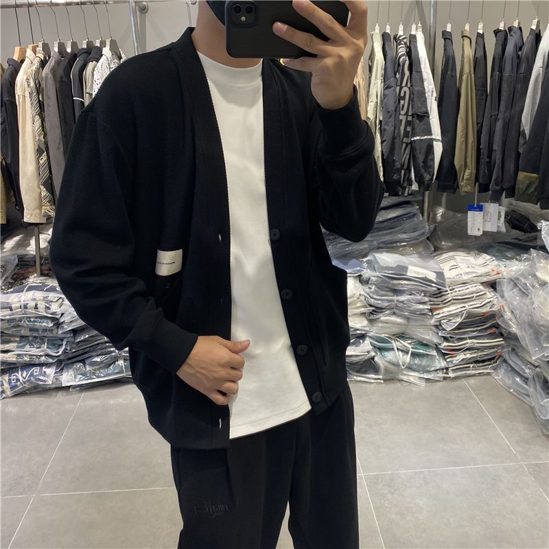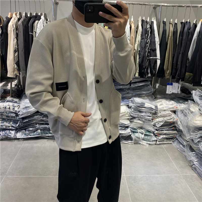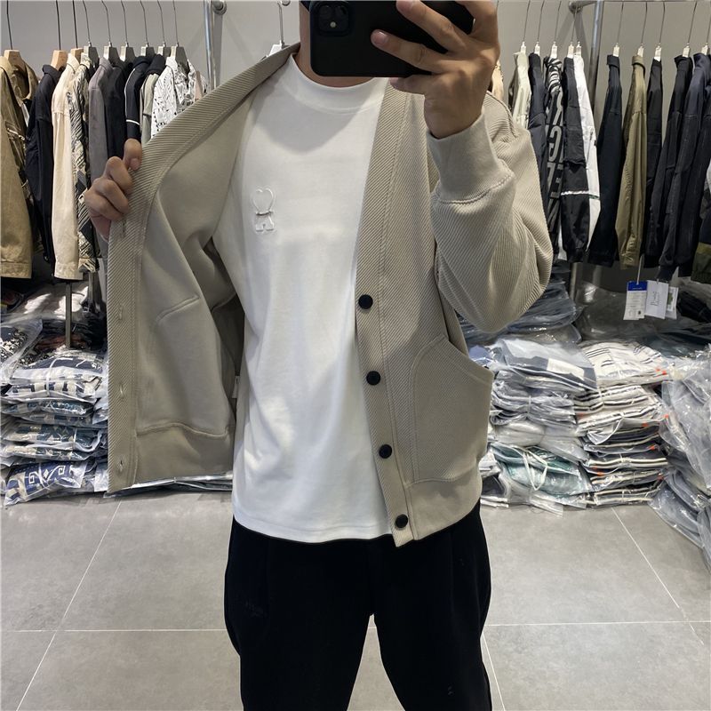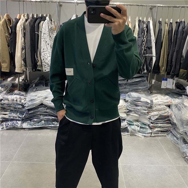 Thời Trang Nam Cổ Chữ V Màu Dệt Kim Áo Khoác Cardigan Mùa Thu Mới Đơn Giản Và Đa Năng Thường Ngày Miếng Dán Áo Khoác Ngoài