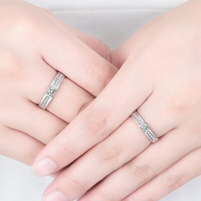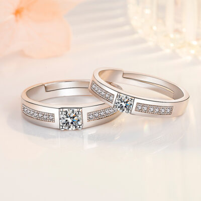 Thời trang quốc triều khảm zircon nhẫn mở tình yêu đầu tiên như cặp đôi đầu tiên nhẫn nam và nữ đơn giản nhẫn kim cương trắng