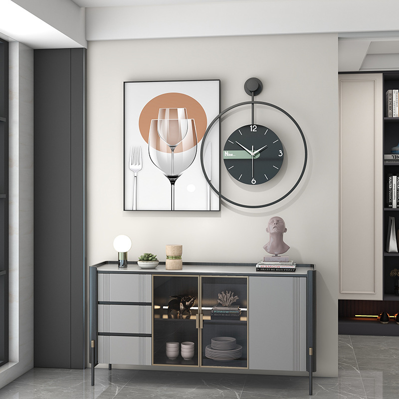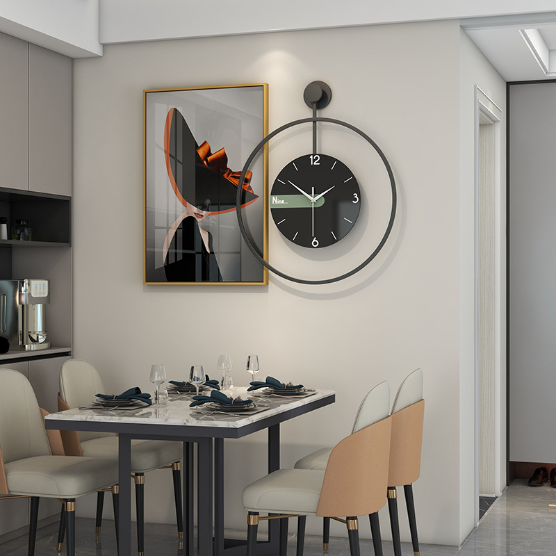 Thời trang sáng tạo đồng hồ treo tường phòng khách phong cách tối giản đồng hồ nghệ thuật tròn đồng hồ im lặng lưới màu đỏ nhà hàng đồng hồ treo tường