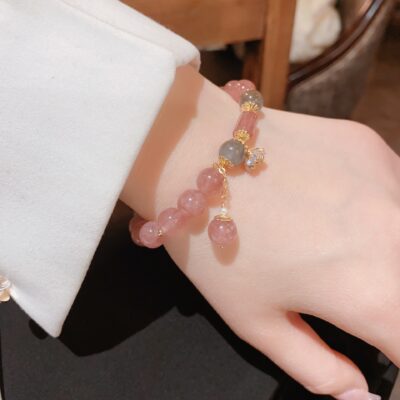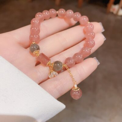 Thời trang và cao cấp pha lê dâu tây chắc chắn dây vòng tay nữ ins thiết kế thích hợp boudoir vòng tay mật ong ánh sáng trang sức tinh tế sang trọng