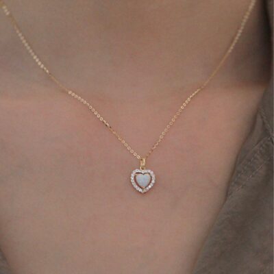 Thời trang xuyên biên giới Châu Âu và Châu Mỹ bán chạy nhất Vòng cổ bằng đá opal hình trái tim bạch kim Mặt dây chuyền trái tim bằng kim cương trắng Chuỗi xương đòn Trang trí đơn giản và đa năng