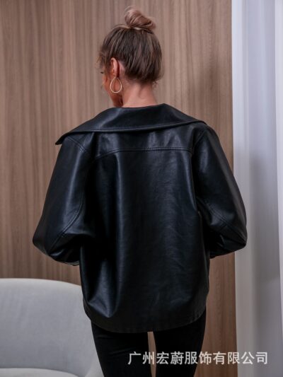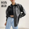 Thời trang xuyên biên giới ngoại thương Âu Mỹ PU áo khoác da thường áo khoác nữ dáng rộng áo khoác da nữ dài tay