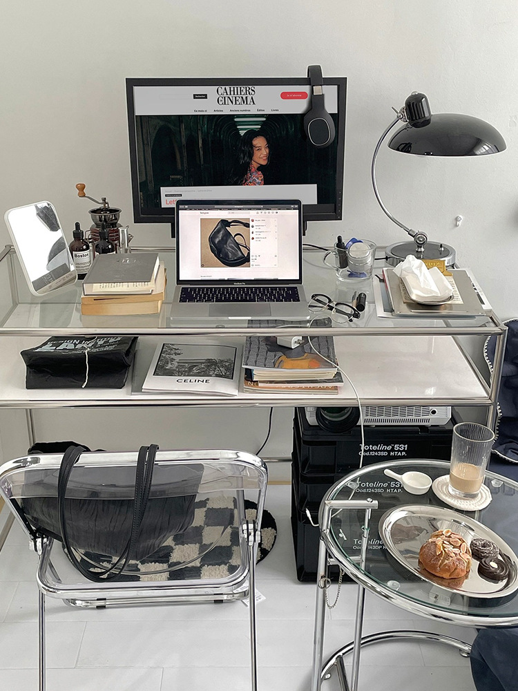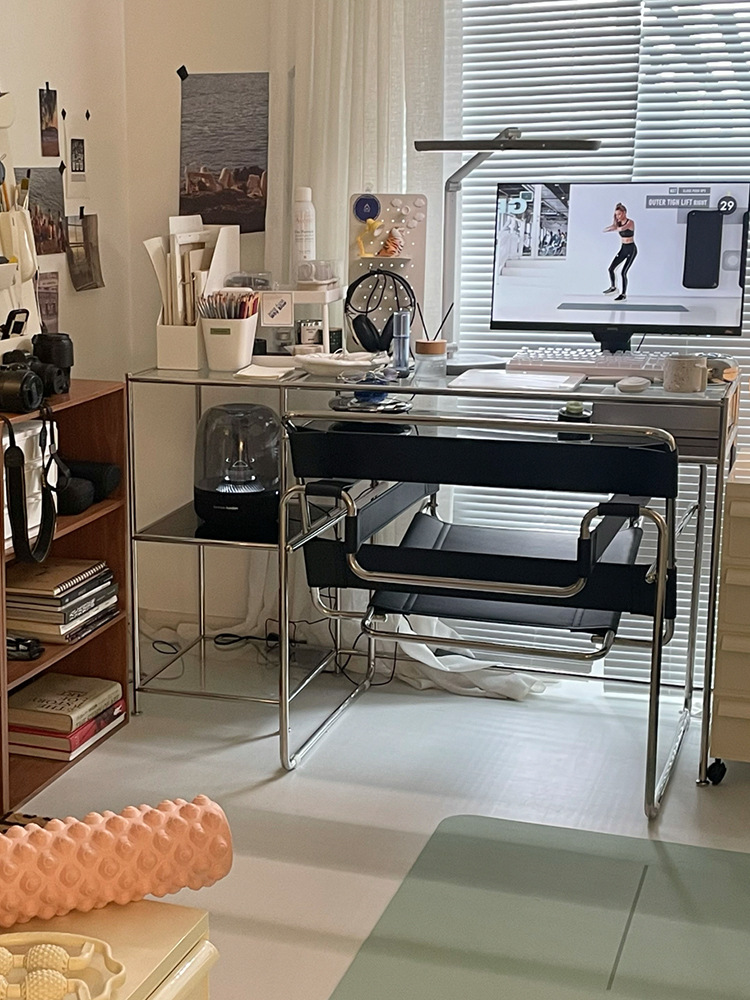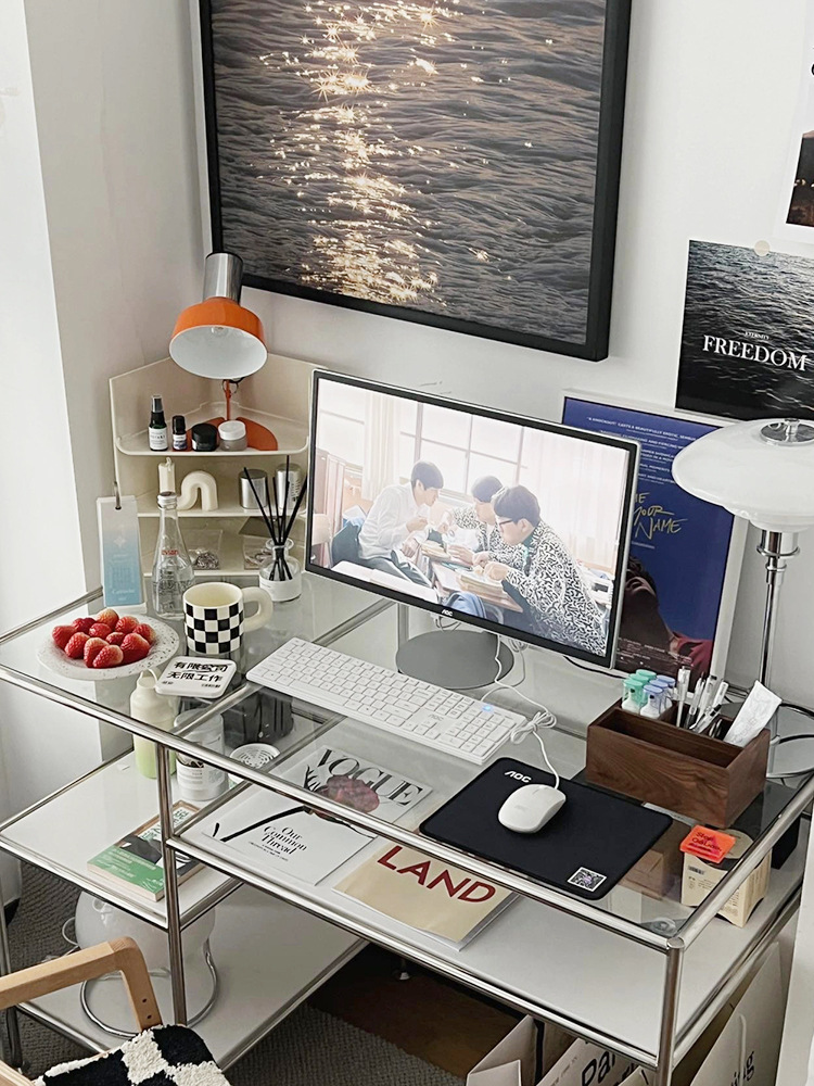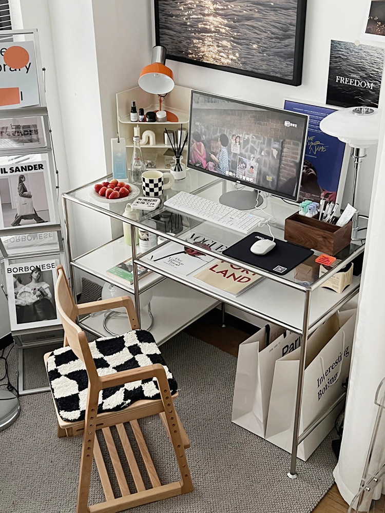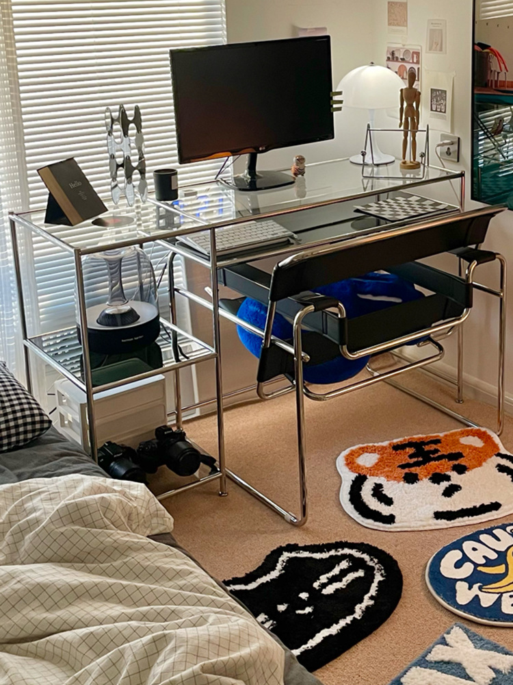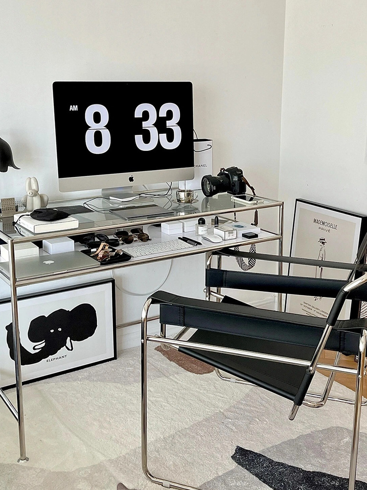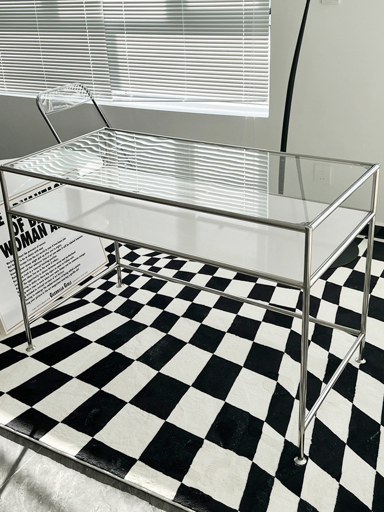 Thời Trung Cổ Thép Không Gỉ Để Bàn Máy Tính Kính Cường Lực Sang Trọng Bàn Viết Bàn Trang Điểm Đơn Giản Tại Nhà Bàn Văn Phòng
