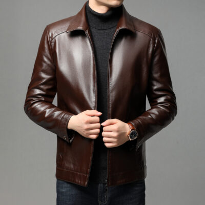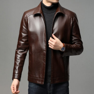 Thu Đông 2022 Áo Khoác Da Nam PU Dài Giữa Ve Áo Nam Xu Hướng Hàng Đầu Áo Khoác Da