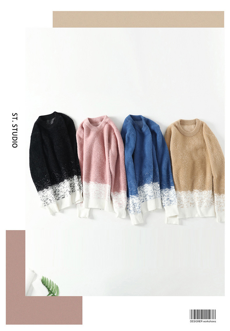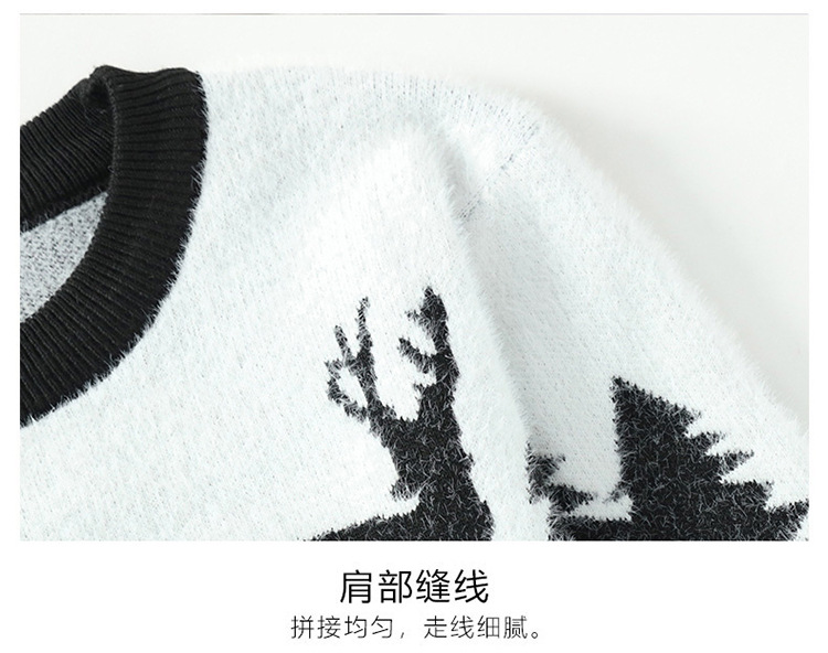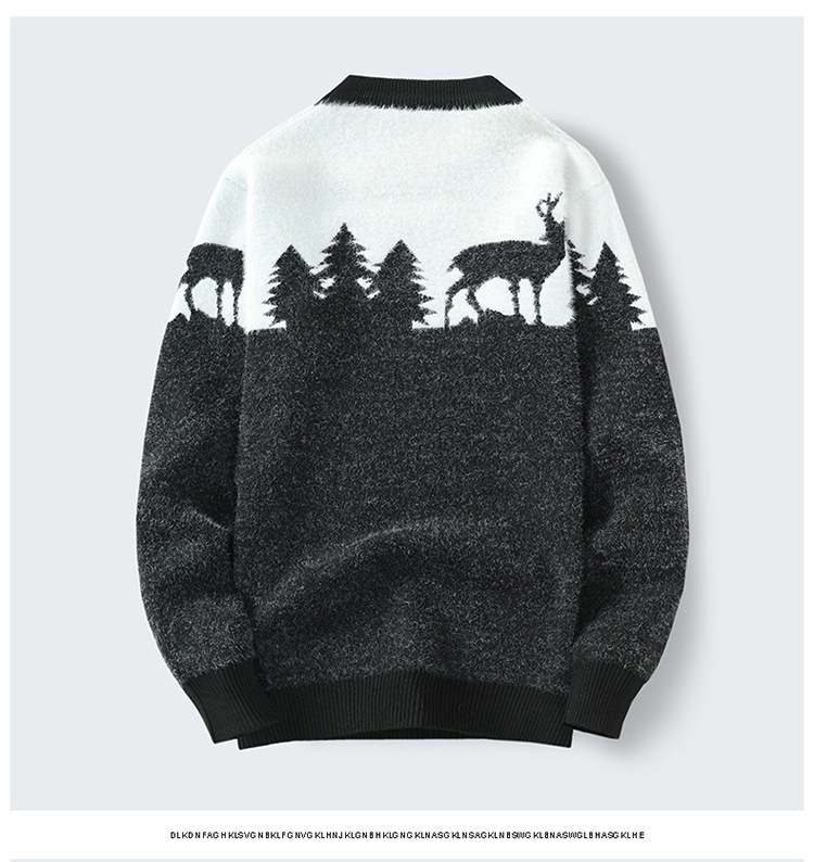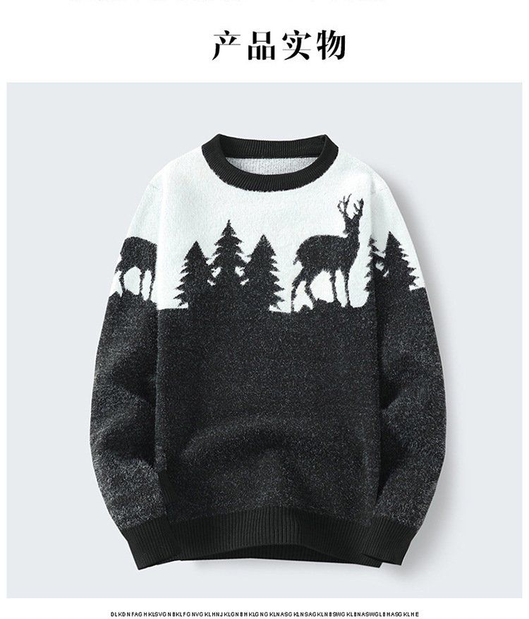 Thu Đông 2022 Mới Áo Len Nam Mohair Áo Len Dệt Kim Nâu Vàng Ngoại Thương Dệt Kim Đen Trắng 9818