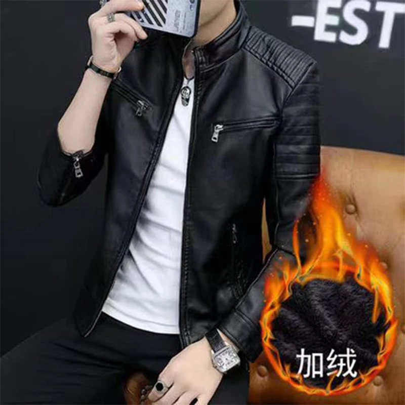 Thu Đông Cổ Đứng Lỏng Lẻo Thường Ngày PU Lether Áo Khoác Nam Thêm Nhung Ấm Dây Kéo Nam Xu Hướng Thời Trang Cardigan Top áo khoác ngoài