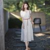 Thung lũng bí ngô mùa xuân và mùa hè Pháp lụa dâu tằm calendula in váy nữ tính xếp nếp váy mỏng L1034