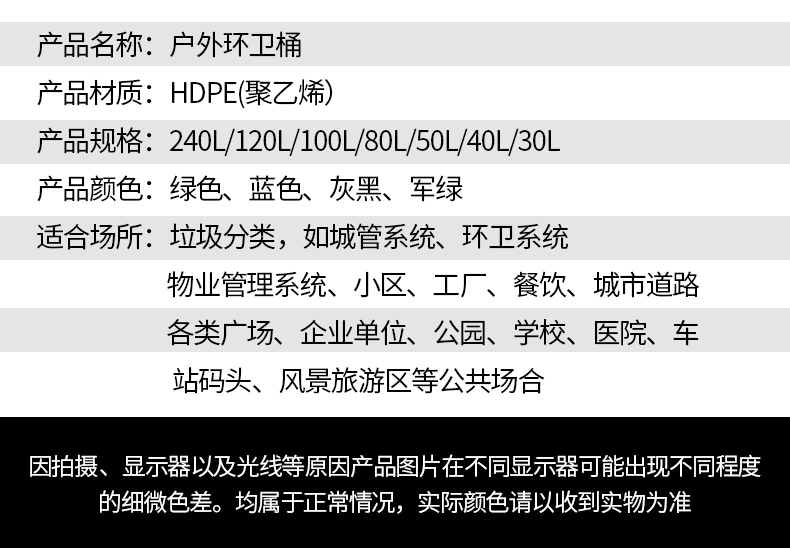 Sản phẩm nổi bật với các đặc điểm: Thùng rác 240L lớn ngoài trời phân loại vệ sinh cộng đồng 120 lít 100l thùng rác ngoài trời kích thước lớn 50L đạp
