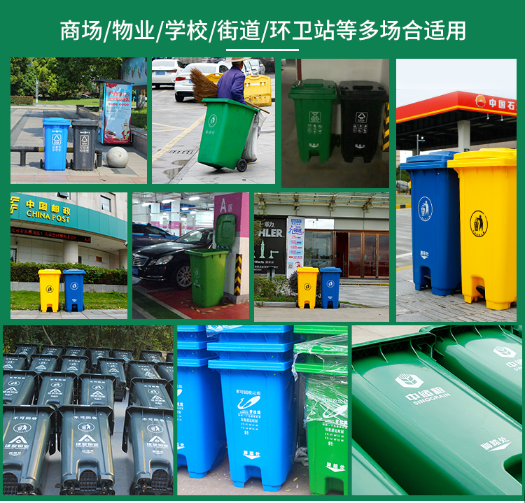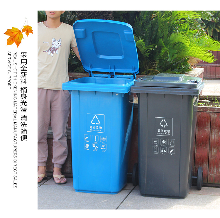 Thùng rác 240L ngoài trời kích thước lớn có nắp 100l công suất lớn thương mại kích thước lớn phân loại xe kéo bất động sản vệ sinh cộng đồng là lựa chọn lý tưởng cho không gian công cộng, sân vườn hoặc khu đô thị. Sản phẩm giúp nâng cao hình ảnh chuyên nghiệp và sạch đẹp cho môi trường sống.