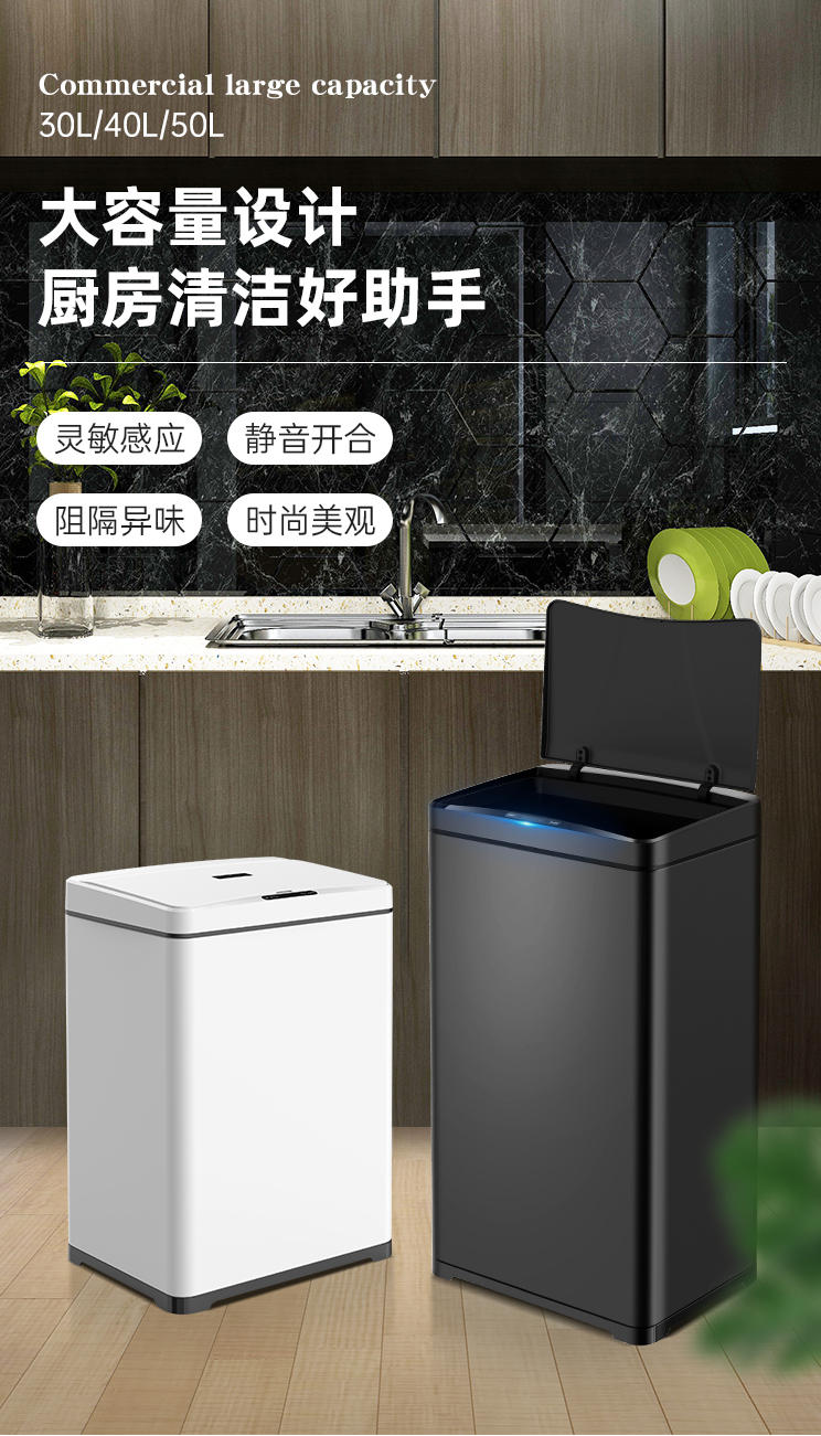 Thùng rác 30 lít cảm ứng thông minh có nắp lớn nhà bếp gia đình thương mại nhà hàng khách sạn trung tâm mua sắm hộp cao cấp đẹp