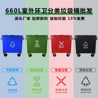 660 lít đô thị ngoài trời dung tích lớn nhựa dày vệ sinh phân loại thùng rác có nắp thùng rác thương mại bán buôn_x000D_