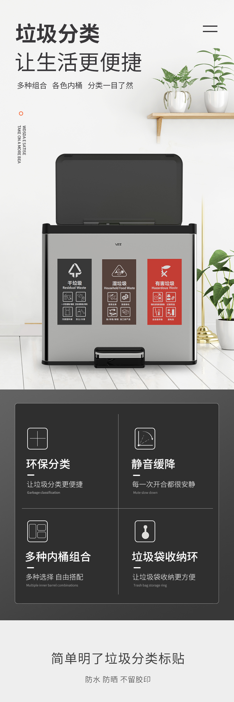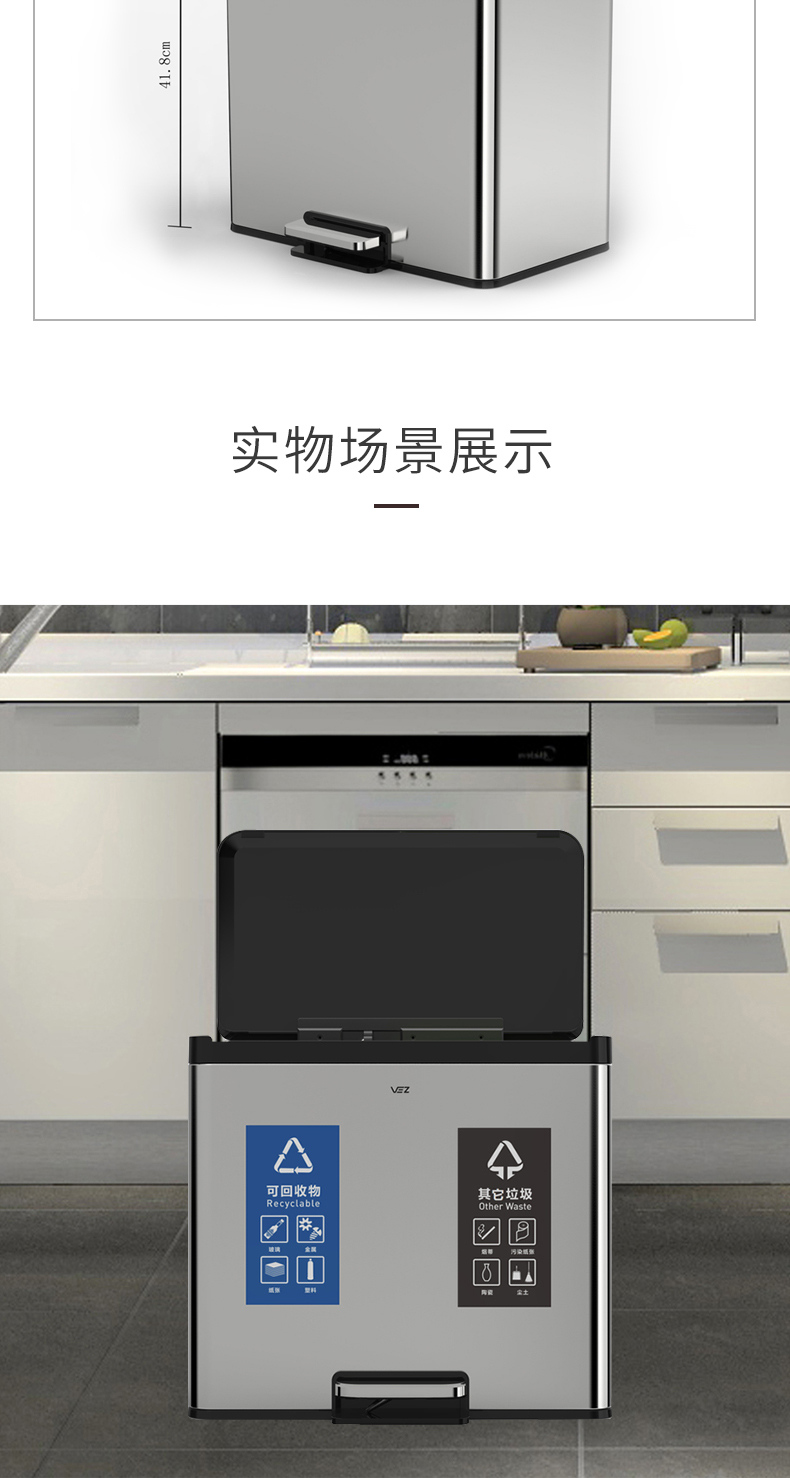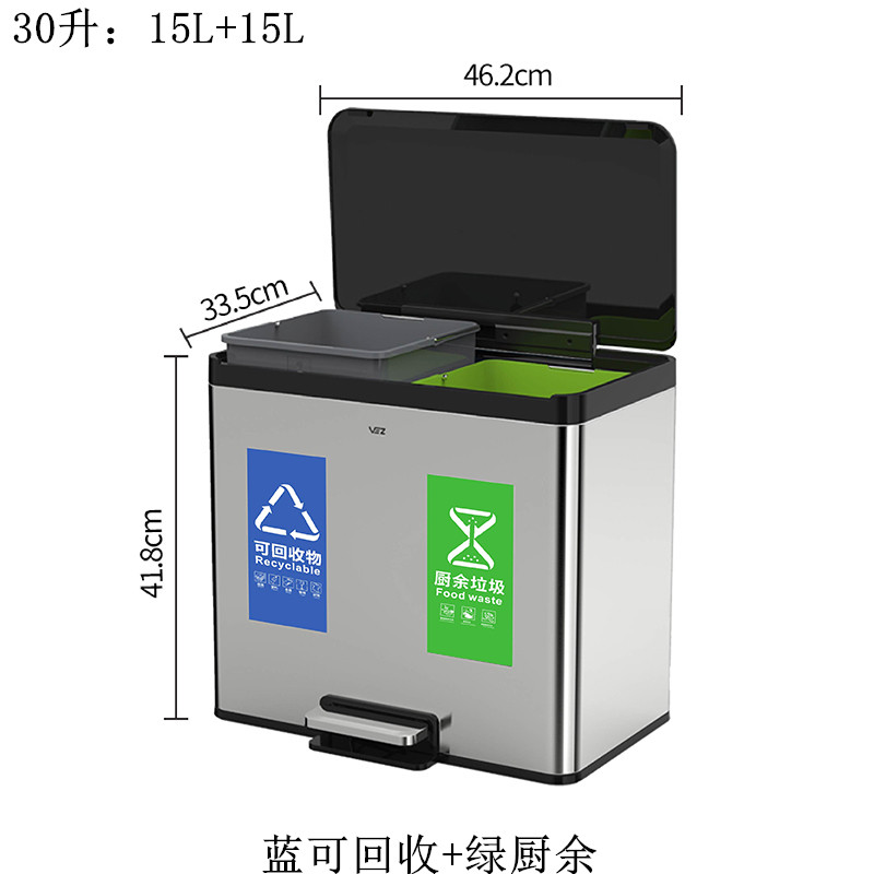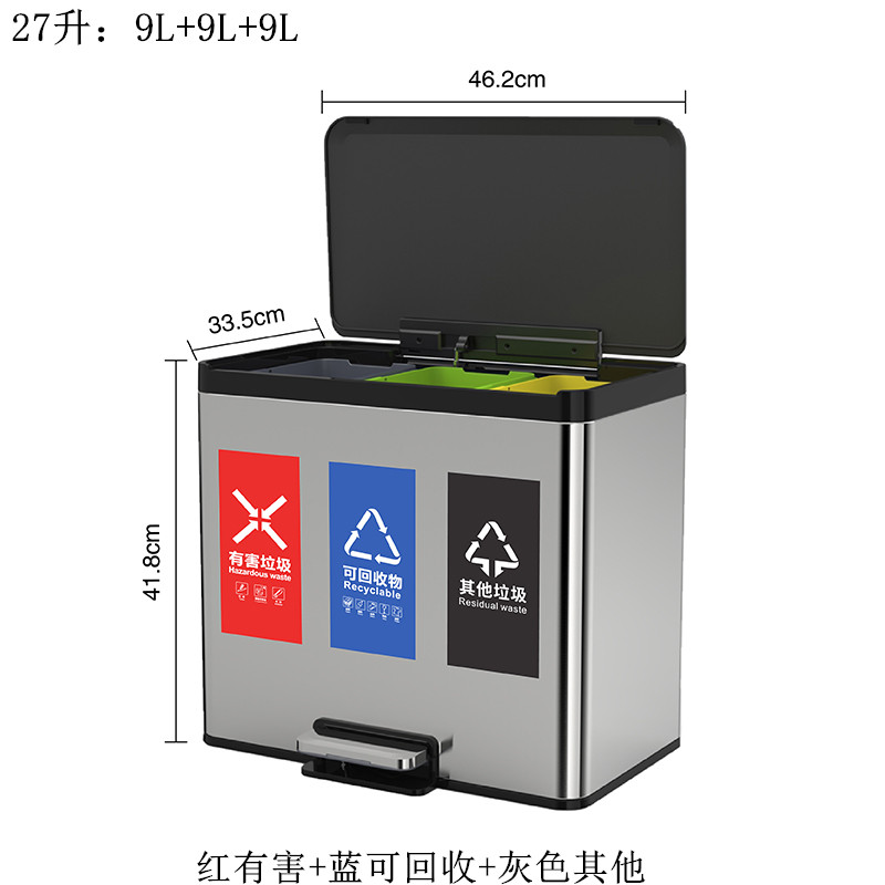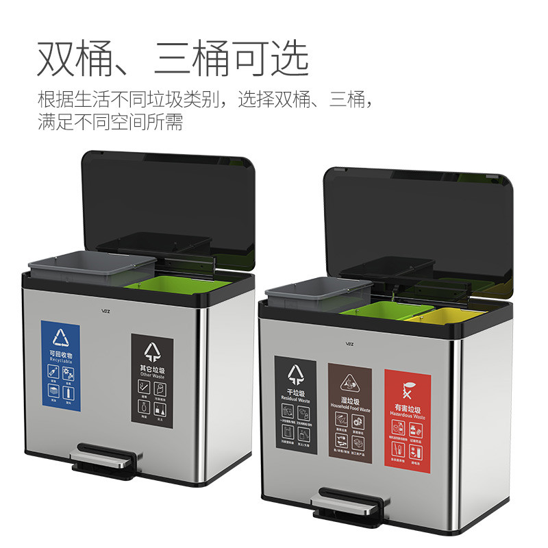 Thùng rác ba loại thùng rác nhà văn phòng sảnh khách sạn ngân hàng công cộng sử dụng thùng đôi thép không gỉ với thùng bên trong