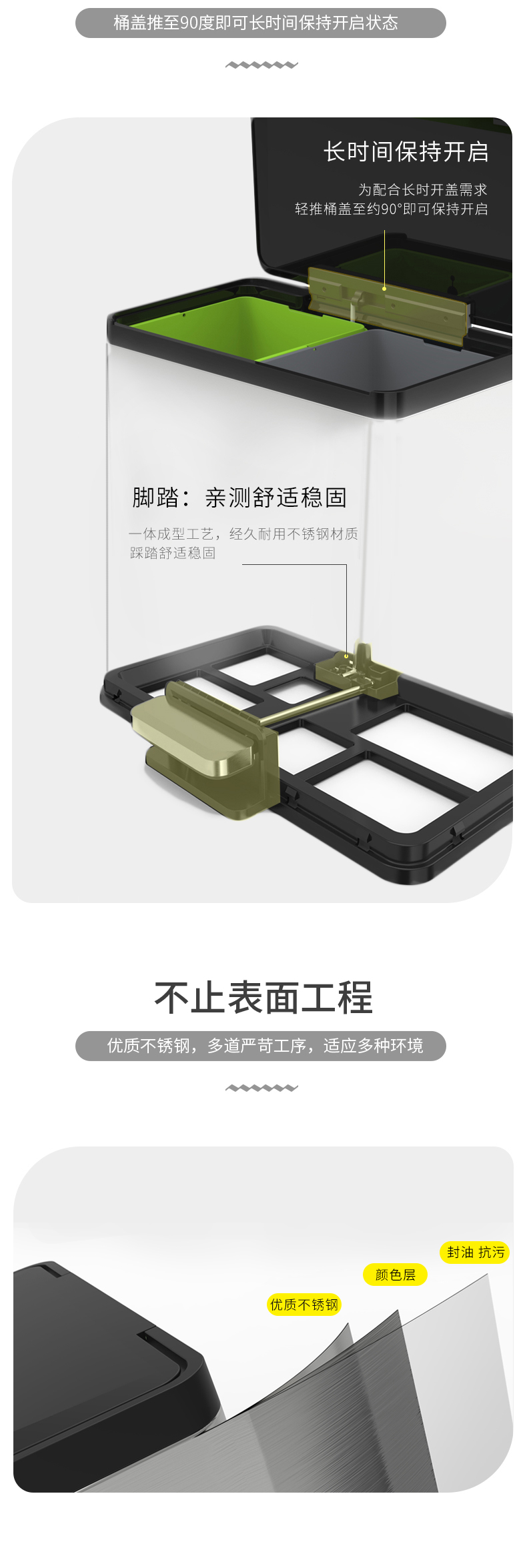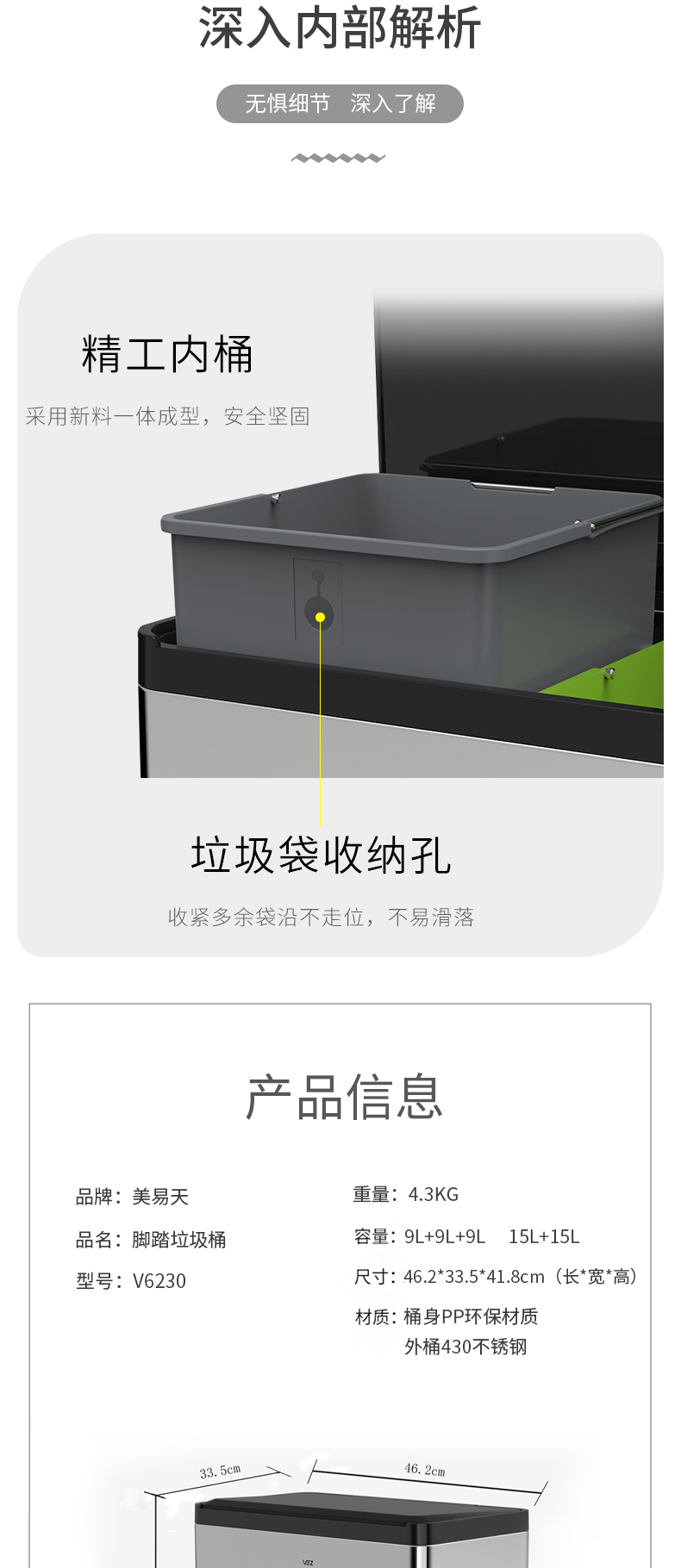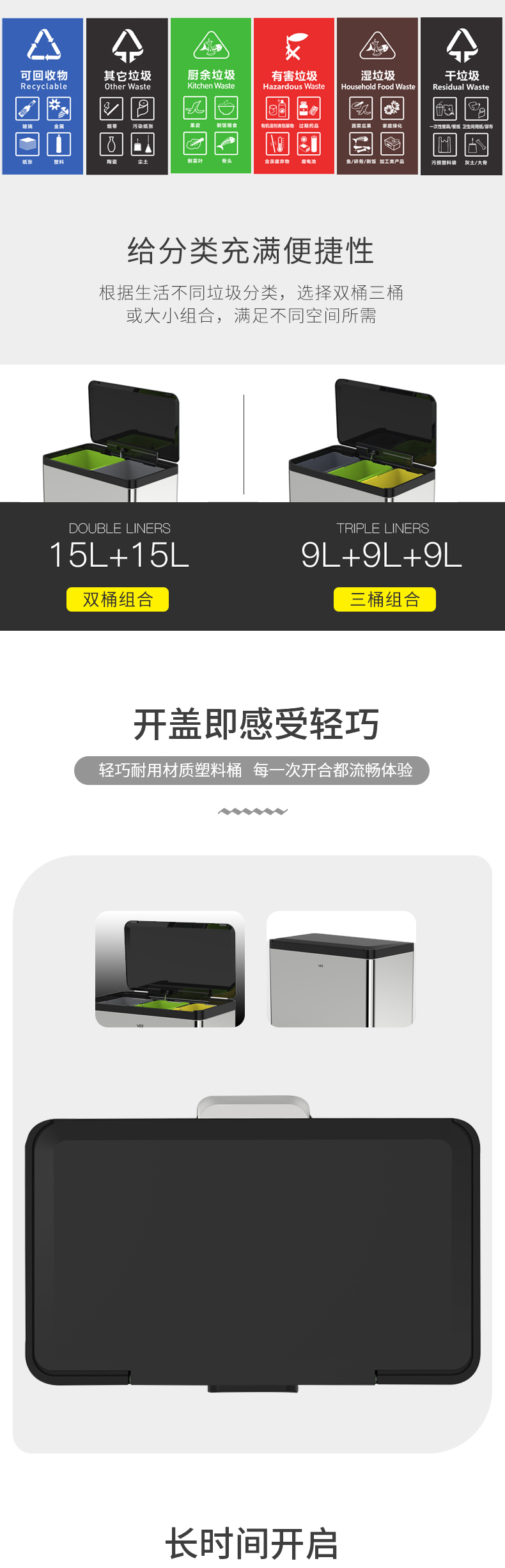Thùng rác ba loại thùng rác nhà văn phòng sảnh khách sạn ngân hàng công cộng sử dụng thùng đôi thép không gỉ với thùng bên trong